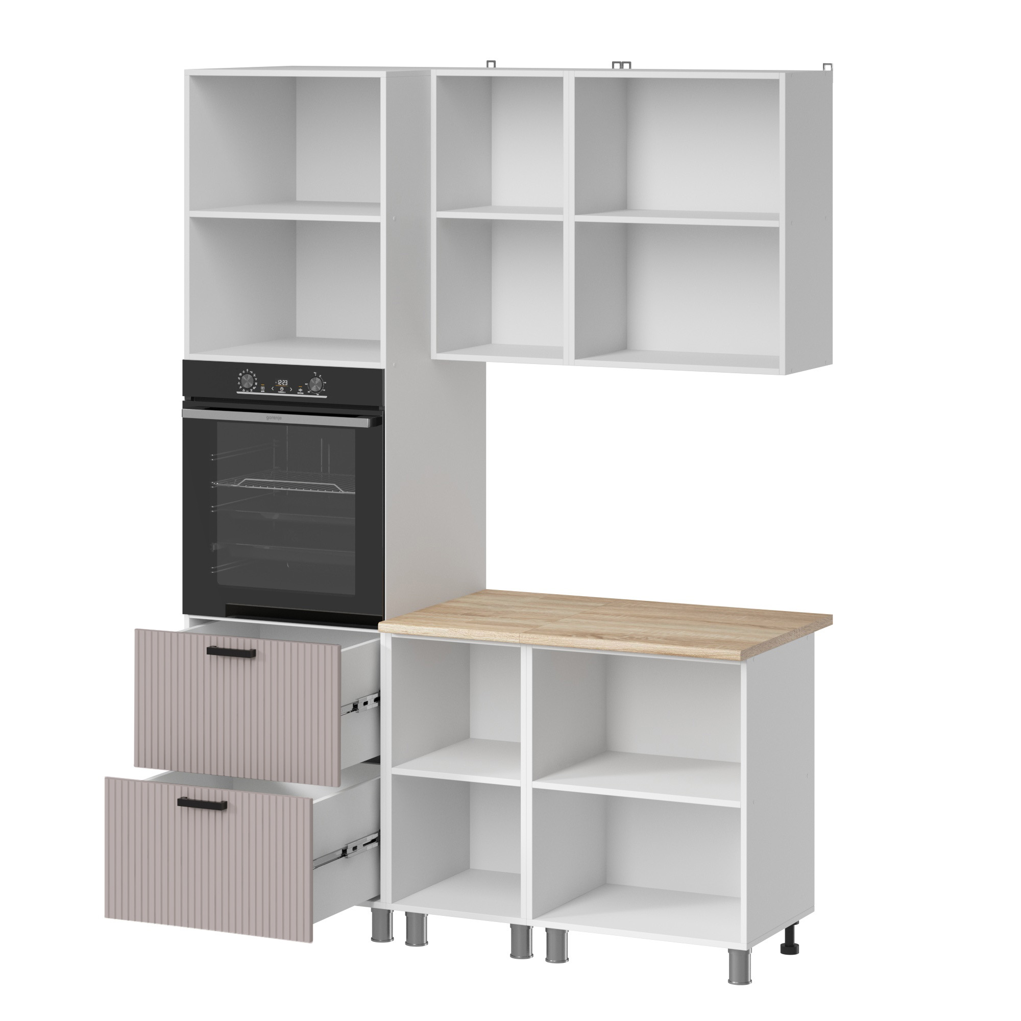 Фрезеровка этой коллекции – актуальный интерьерный приём, который уже стал частью современной классики. Она не перегружает кухню визуально, но придаёт ей ритм и характер.