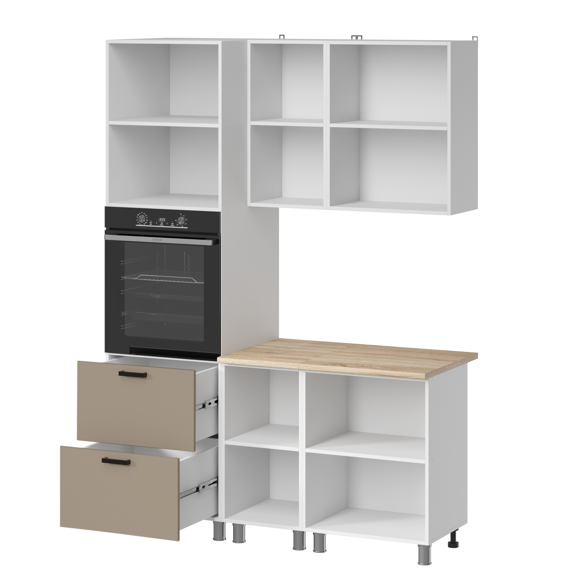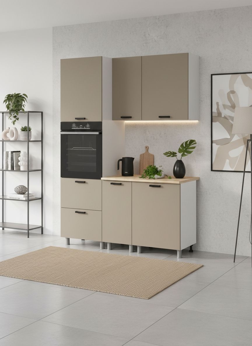 Фасады модульной кухни «Орешник» выполнены из современного пластика акрилит, который отличается прочностью, глубиной цвета и эффектным внешним видом. Торцы защищены ПВХ-кромкой 1 мм, что обеспечивает аккуратный вид и защиту от влаги и механических повреждений.