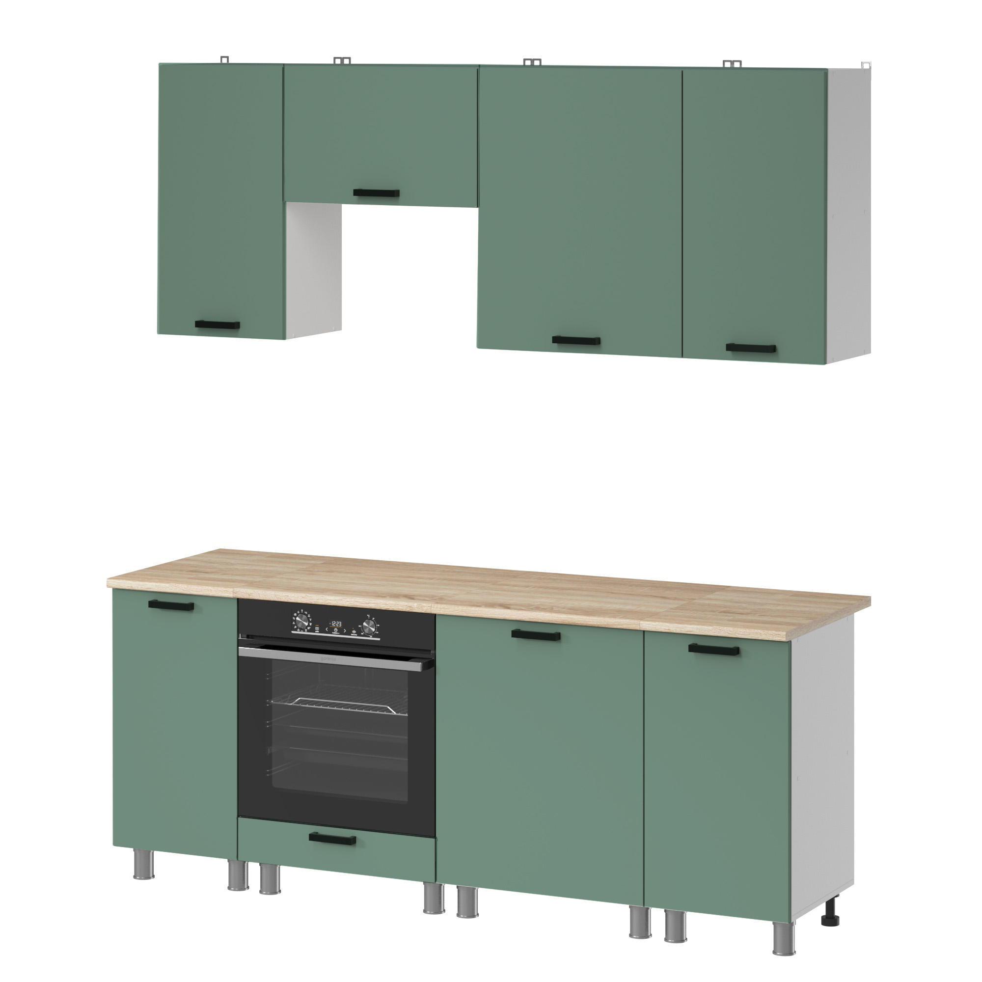 МК Аленушка 2м Орешник Матовая Мята,скоба черный,сонома (без столешницы) - Фирменный интернет-магазин мебели «Арника»