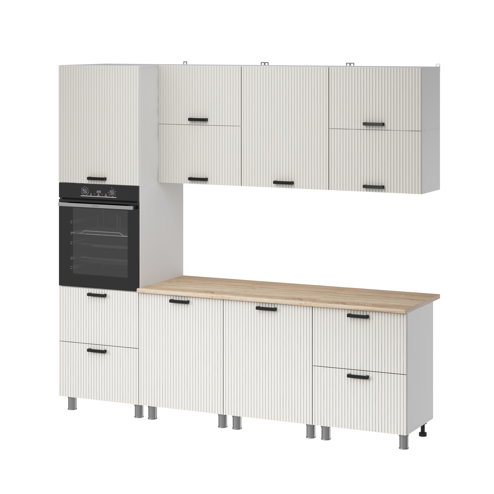 Фрезеровка этой коллекции – актуальный интерьерный приём, который уже стал частью современной классики. Она не перегружает кухню визуально, но придаёт ей ритм и характер.