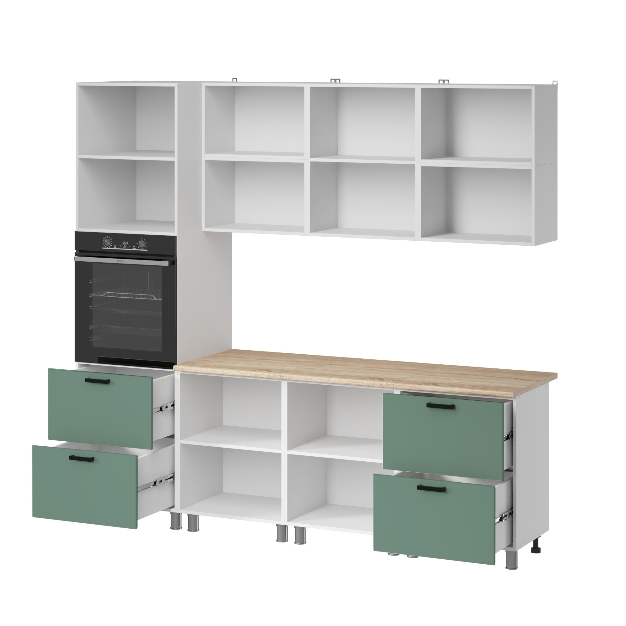 МК Аленушка 2,4м Орешник Матовая Мята,скоба черный,сонома