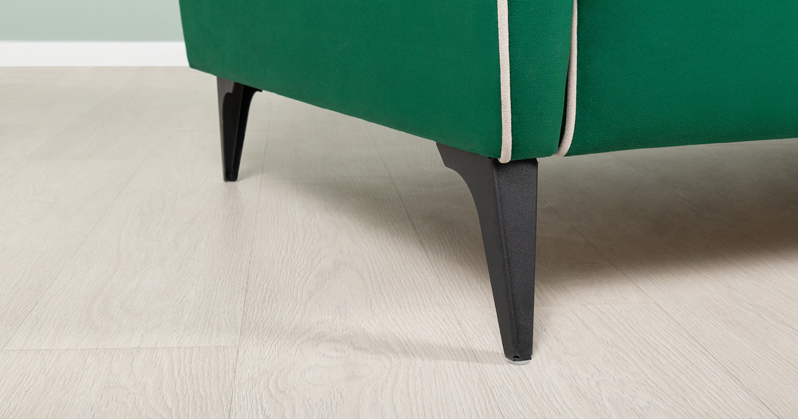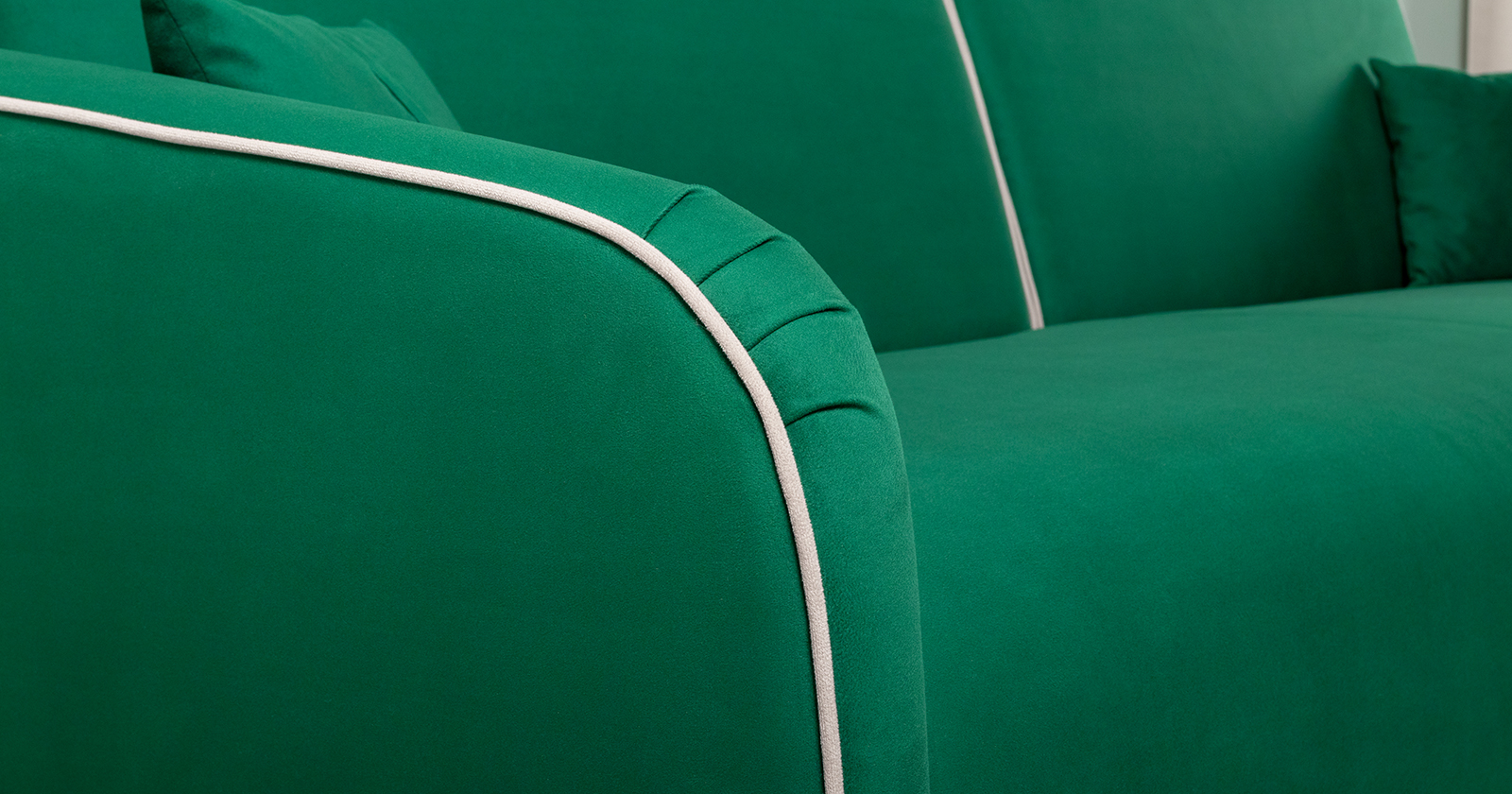 Обивка дивана выполнена из велюра — высококачественного материала, состоящего из 100 % полиэстера. Велюр обладает высокой износостойкостью, легко чистится и имеет средневыраженный «пальчиковый эффект», что обеспечивает долговечность и приятный внешний вид изделия.