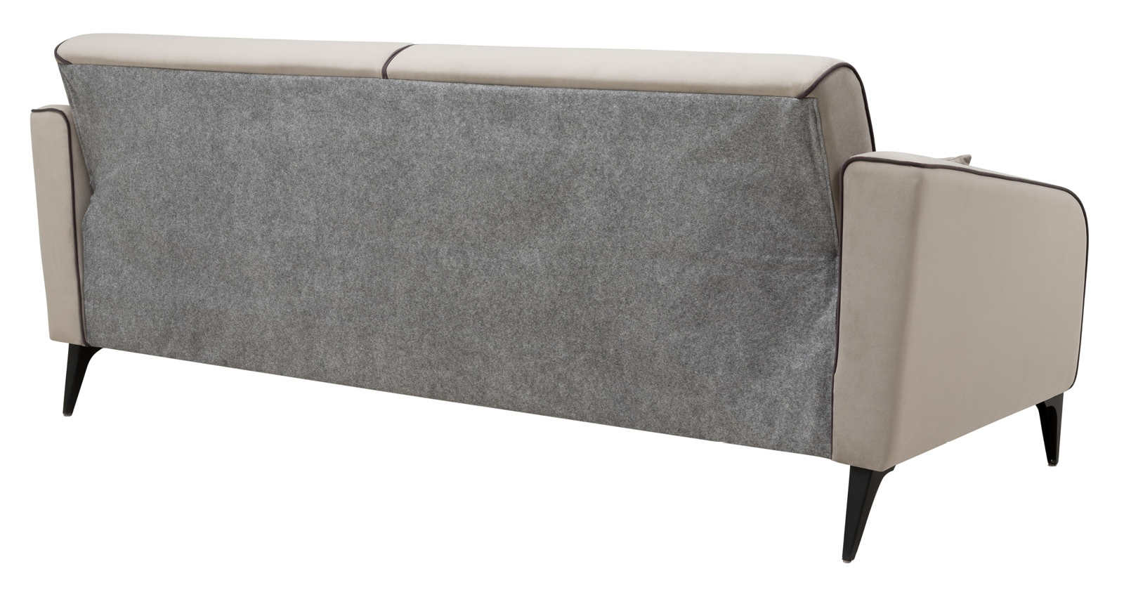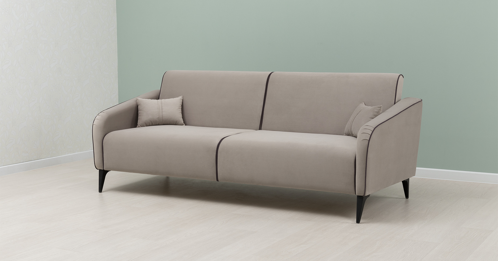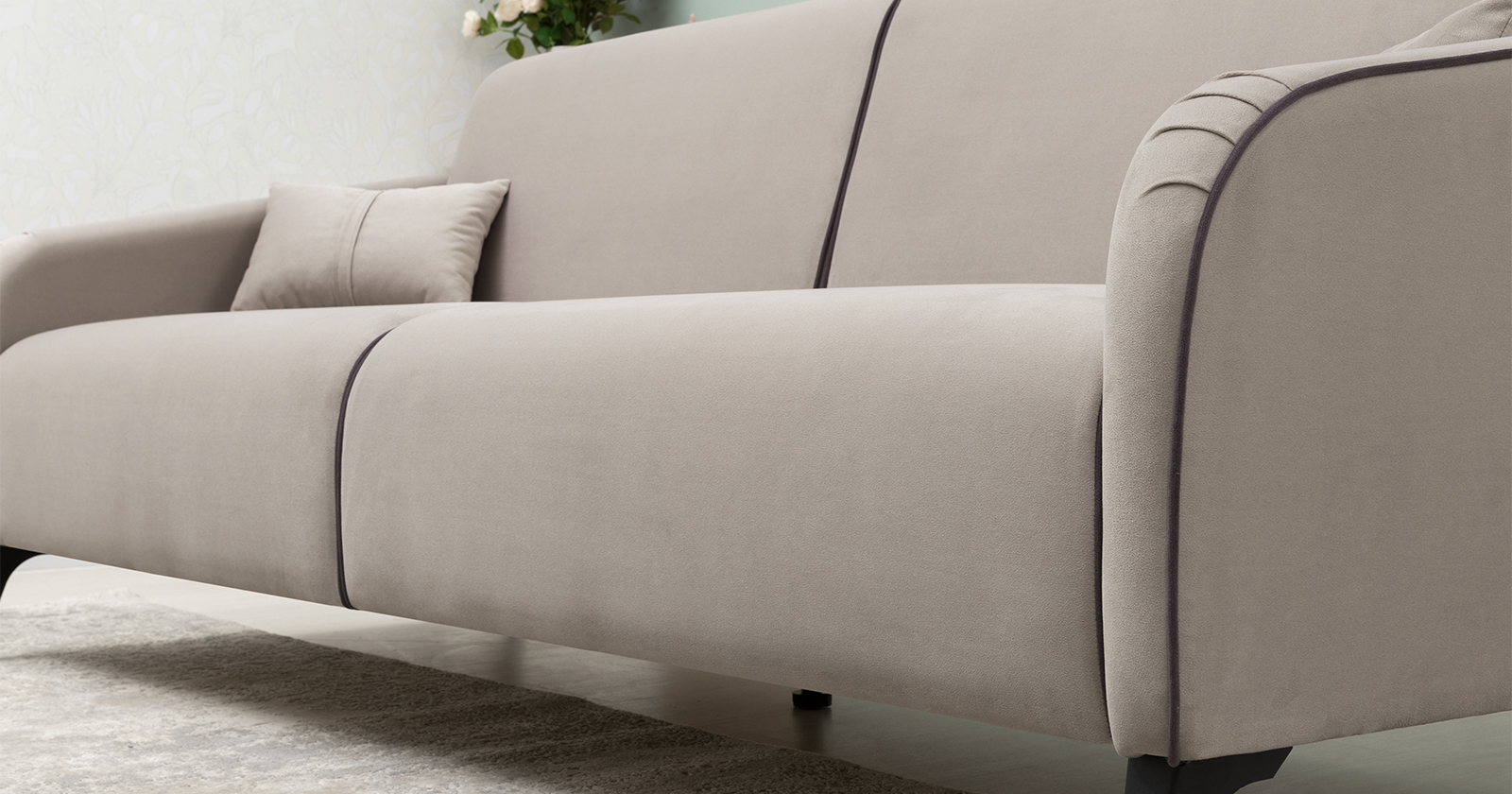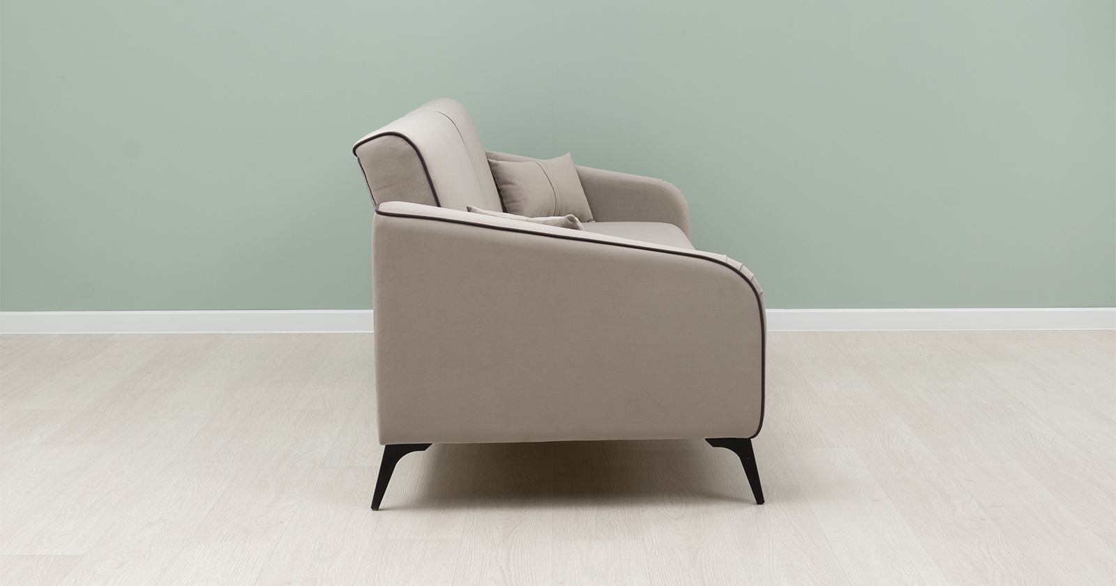 Обивка дивана выполнена из велюра — высококачественного материала, состоящего из 100 % полиэстера. Велюр обладает высокой износостойкостью, легко чистится и имеет средневыраженный «пальчиковый эффект», что обеспечивает долговечность и приятный внешний вид изделия.