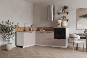 Кухня «Лизет» сочетает петербургскую элегантность и современную функциональность. Вдохновлённая эпохой Петра I и архитектурой Петербурга, она объединяет благородные цвета, тёплую древесную текстуру и лаконичные линии — для создания уютной и гармоничной кухни.