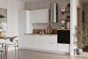 Кухня «Лизет» сочетает петербургскую элегантность и современную функциональность. Вдохновлённая эпохой Петра I и архитектурой Петербурга, она объединяет благородные цвета, тёплую древесную текстуру и лаконичные линии — для создания уютной и гармоничной кухни.