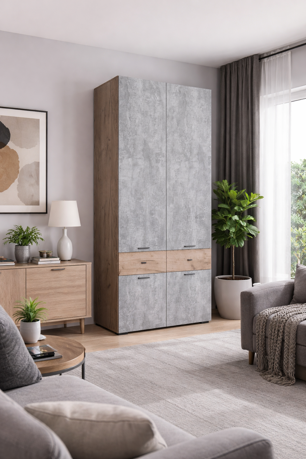 Гостиная Дублин Шкаф 2-х ств. дуб крафт серый/цемент - Фирменный интернет-магазин мебели «Арника»