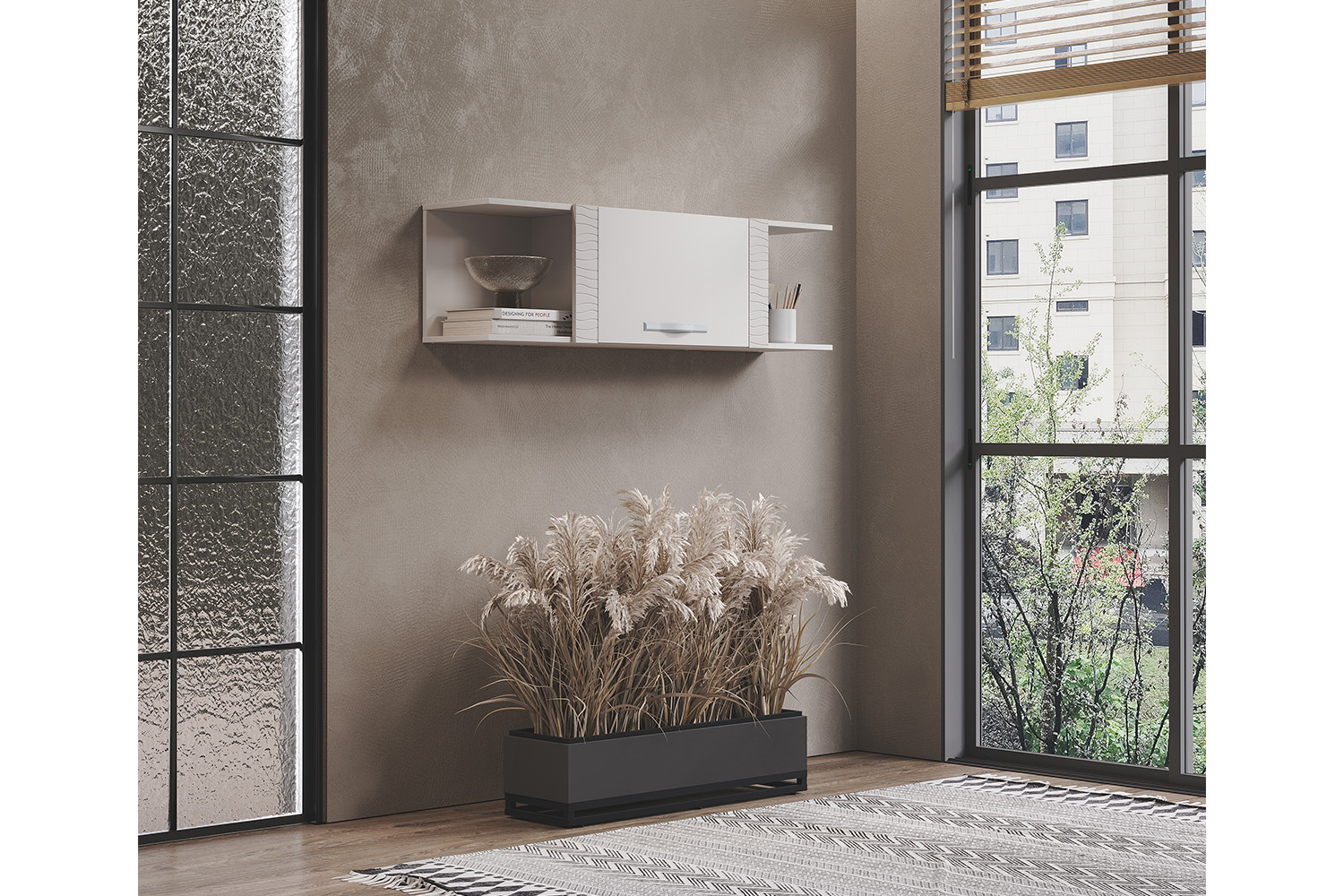 Навесная полка «Монако» – практичный и стильный предмет интерьера, который дополнит любую комнату вашего дома. Изделие изготовлено из ЛДСП приятного цвета «кашемир», фасады имеют декоративные вставки из МДФ. В открытых зонах вы можете разместить сувениры и предметы декора, а за распашной дверцей можно расположить вещи, которые должны быть скрыты.