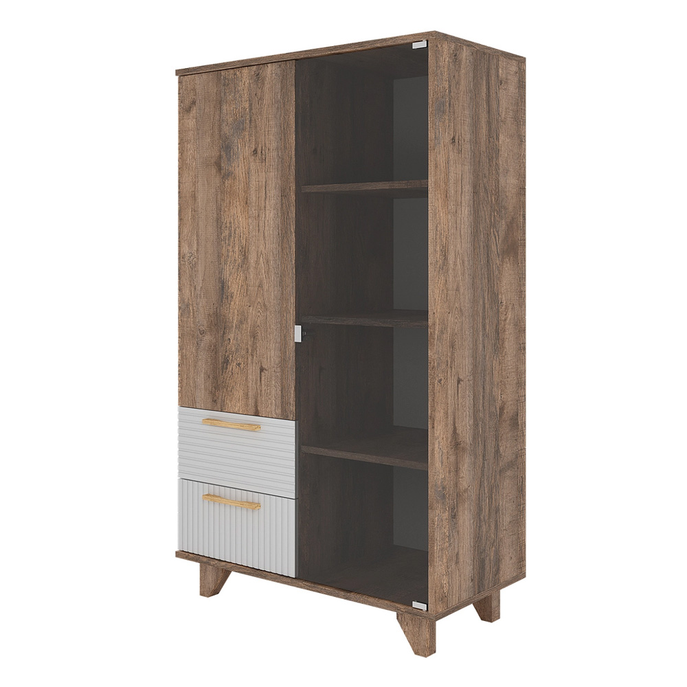 Ньёрд Шкаф-Витрина Н Дуб Самдал / Белый софт матовый - Фирменный интернет-магазин мебели «Арника»