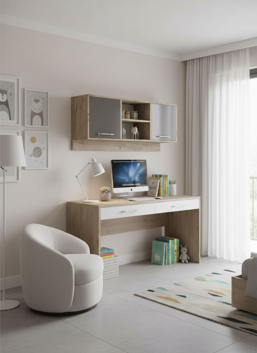 Навесная конструкция позволяет рационально использовать пространство, освобождая пол и визуально облегчая обстановку. Секция отлично подходит для хранения книг, декора, аксессуаров или повседневных мелочей, сохраняя порядок и аккуратность в комнате.