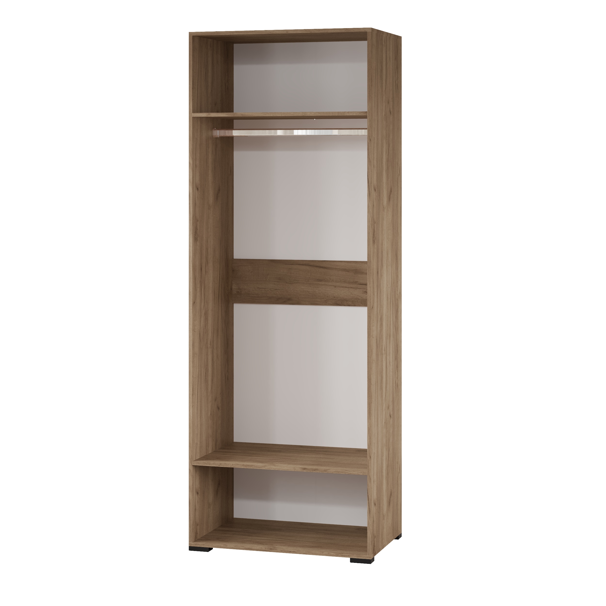 Организовать хранение одежды в малогабаритной спальне легко с помощью двустворчатого шкафа. Шкаф из коллекции Модена имеет продольную штангу и несколько полок. Одежда на плечиках, в сложенном виде и даже коробки с Вашими личными вещами найдут место и будут храниться в порядке. Шкаф особенно удобен для того, чтобы расположить в нем платья (высота модуля — 220 см).