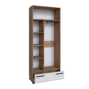 Обыграть шкафную группу в спальне и визуально облегчить интерьер позволит открытый стеллаж из коллекции Модена. Конструкция стеллажа уникальна — открытые полки расположены асимметрично, благодаря чему стеллаж выглядит необычно и позволяет расположить на нем много разноплановых вещей. Книги, журналы, статуэтки, фоторамки, комнатные растения и другие предметы декора найдут свое место и украсят комнату.