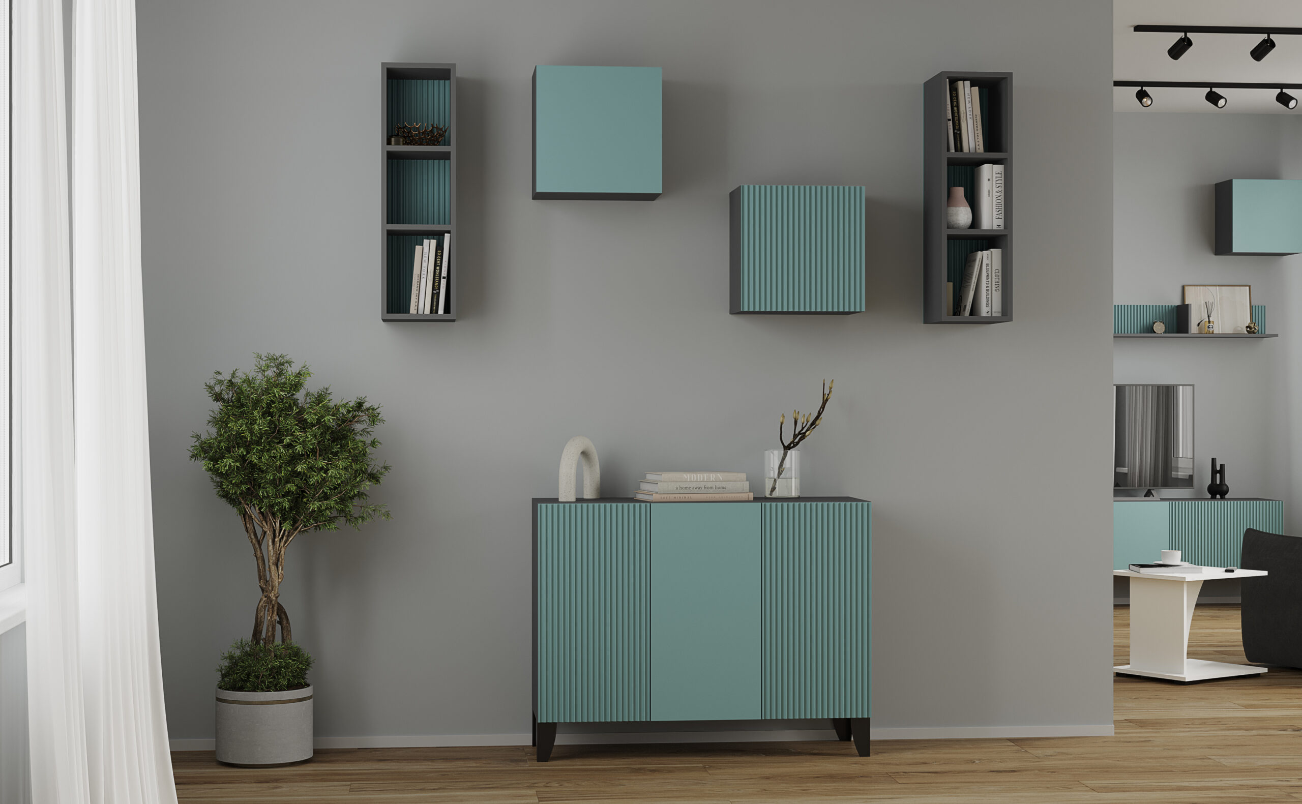Гостиная Сириния Куб 1 серый графит/МДФ бриз - Фирменный интернет-магазин мебели «Арника»