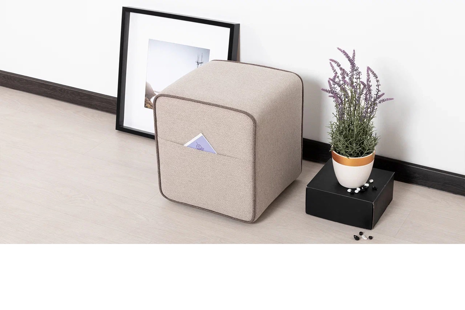 Боковые карманы позволяют удобно хранить небольшие предметы и станут отличным местом для пультов управления, настольной книги или недочитанной газеты. Имеет полноценное посадочное место. Без короба для хранения. Пуф имеет среднюю высоту посадки - 440 мм. Максимальная нагрузка - 130 кг.