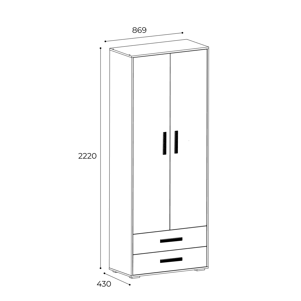 Двухдверный шкаф для одежды из коллекции Стич — универсальный вариант организации хранения в детской комнате мальчика. Благодаря разноплановому наполнению модуля всем вещам маленького героя хватит места. Продольные штанги пригодятся для одежды на плечиках, а комплект полок — для вещей в сложенном виде. Два вместительных ящика на шариковых направляющих Вы можете использовать для деликатных вещей, постельного белья и аксессуаров.