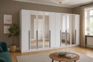 Шкафы из коллекции Мадрид — это универсальное решение для спальни, гостиной и прихожей. Продуманное разноплановое наполнение позволит Вам разместить верхнюю одежду на плечиках на евроштанге, вещи в сложенном виде и аксессуары на полках.