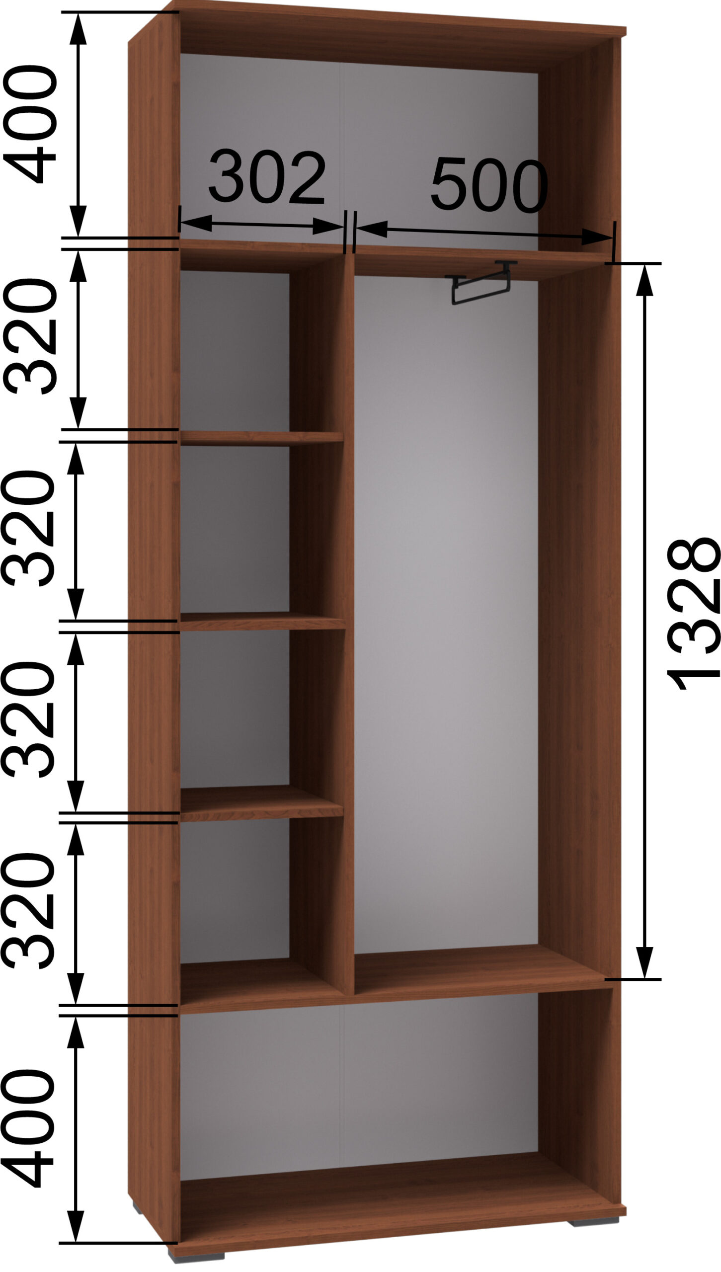 Шкаф для одежды «Ричард», выполненный в единой стилистике коллекции, представляет собой традиционное и практичное решение для хранения одежды и личных вещей. За двумя распашными дверцами скрыто продуманное внутреннее наполнение: четыре узкие пенальные полки, две вместительные полки в верхней и нижней части, а также платяное отделение, оснащённое штангой для удобного размещения одежды на вешалках. Такая организация пространства позволяет рационально распределить вещи и поддерживать порядок в интерьере.