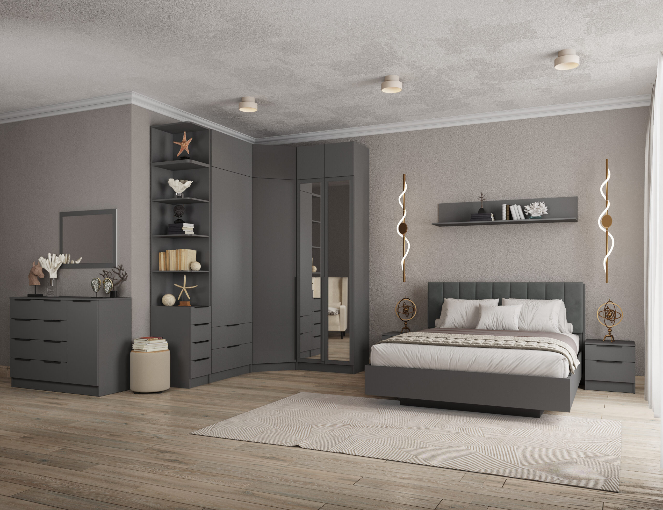 Антресоль Мадрид в цвете Графит серый — функциональный и красивый предмет мебели для вашего дома. Прекрасное сочетание стиля и практичности для вашего пространства. Лаконичный дизайн и продуманная система хранения обеспечивают максимальное удобство в повседневной жизни. Всё в этом предмете мебели сделано для удобства: и внешнее исполнение, и внутреннее наполнение. Одинаково хорошо смотрится как самостоятельно, так и в составе мебельного ансамбля. Умный выбор для тех, кто ценит своё время, пространство и деньги.