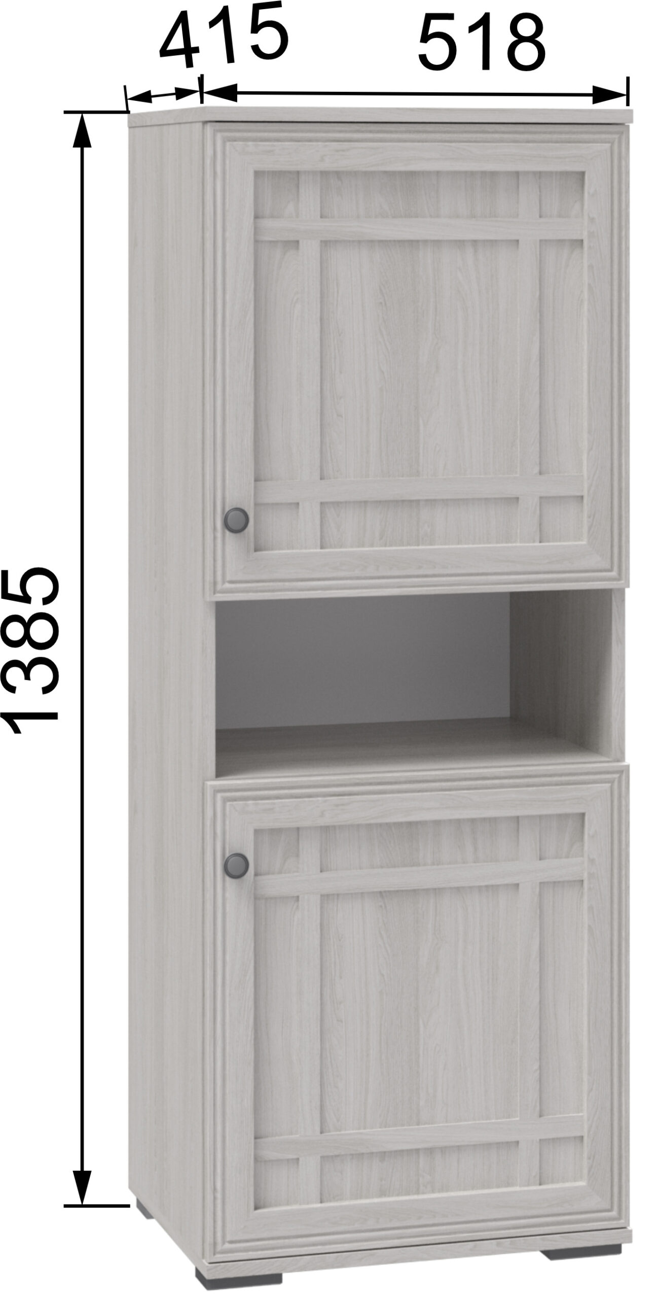 Шкаф-пенал «Ричард», выполненный в едином стиле всей коллекции, представляет собой компактный и функциональный шкаф с пятью полками. Конструкция с двумя распашными дверцами, размещёнными одна над другой, предусматривает открытую нишу между ними. Такое решение позволяет удобно хранить предметы повседневного пользования или использовать пространство для размещения декоративных аксессуаров, подчёркивающих индивидуальность интерьера.