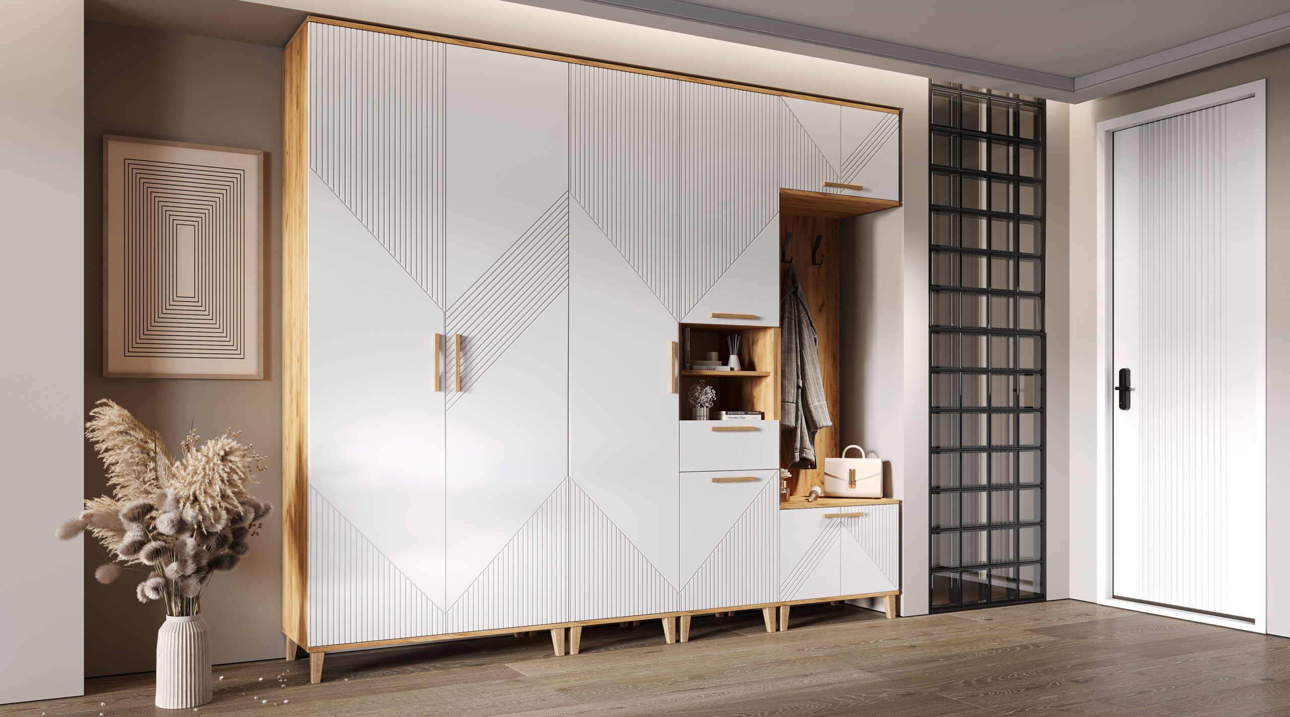 Ирис Прихожая Шкаф (Браш Вайт, Дуб Крафт) - Фирменный интернет-магазин мебели «Арника»