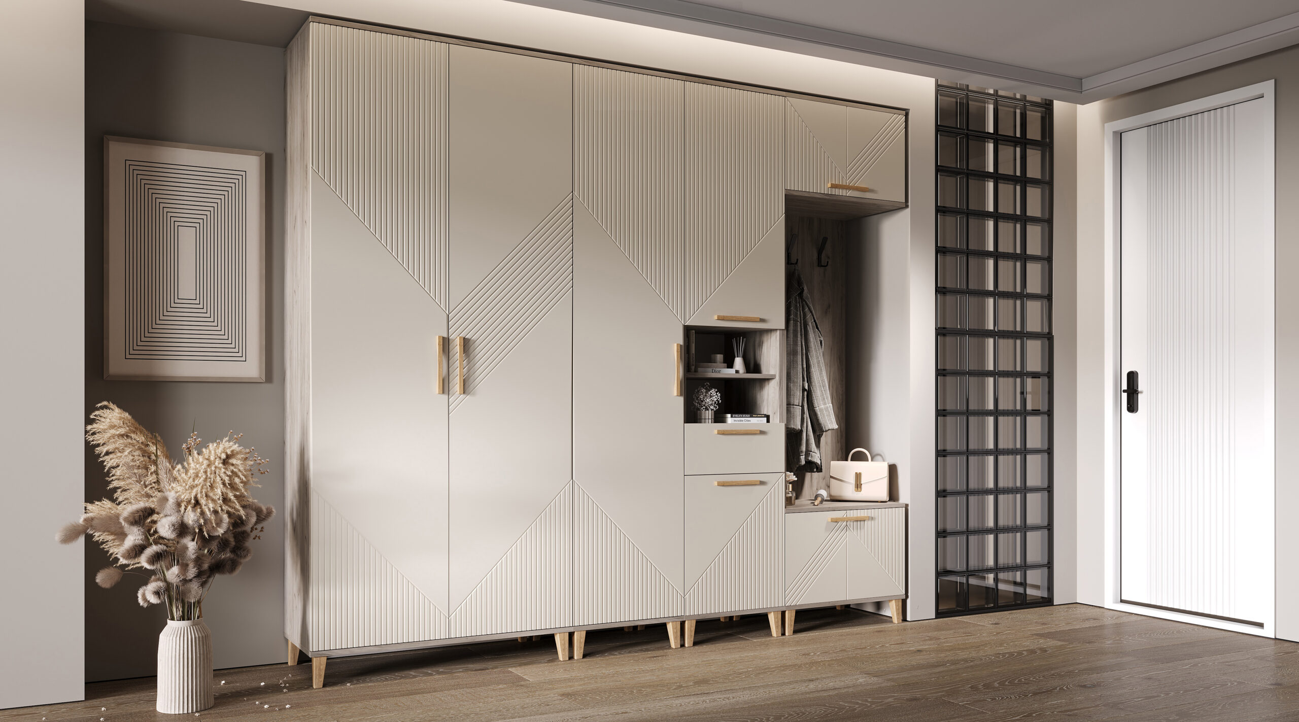 Ирис Прихожая Шкаф с вешалками (Кашемир, Дуб Крафт серый)