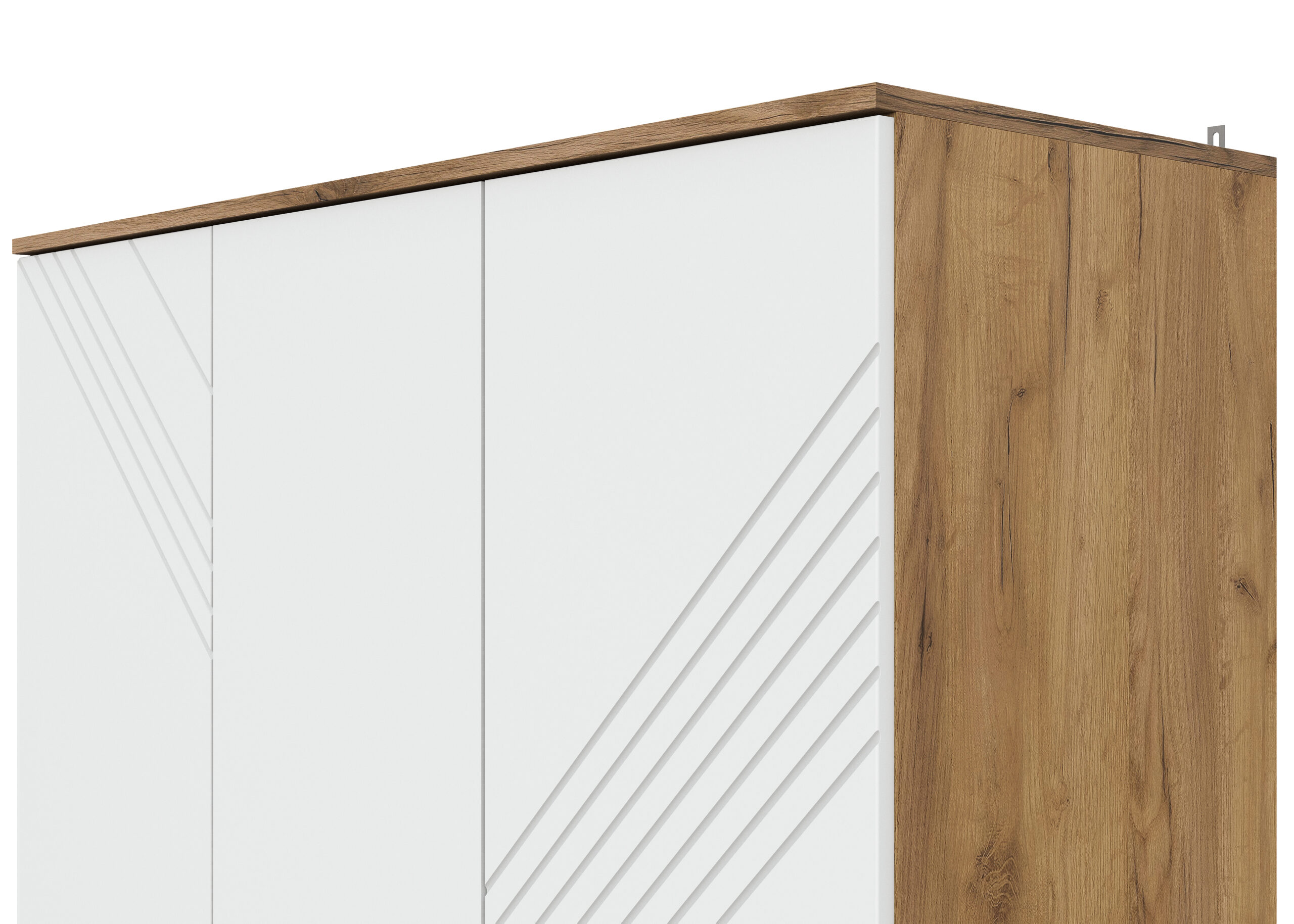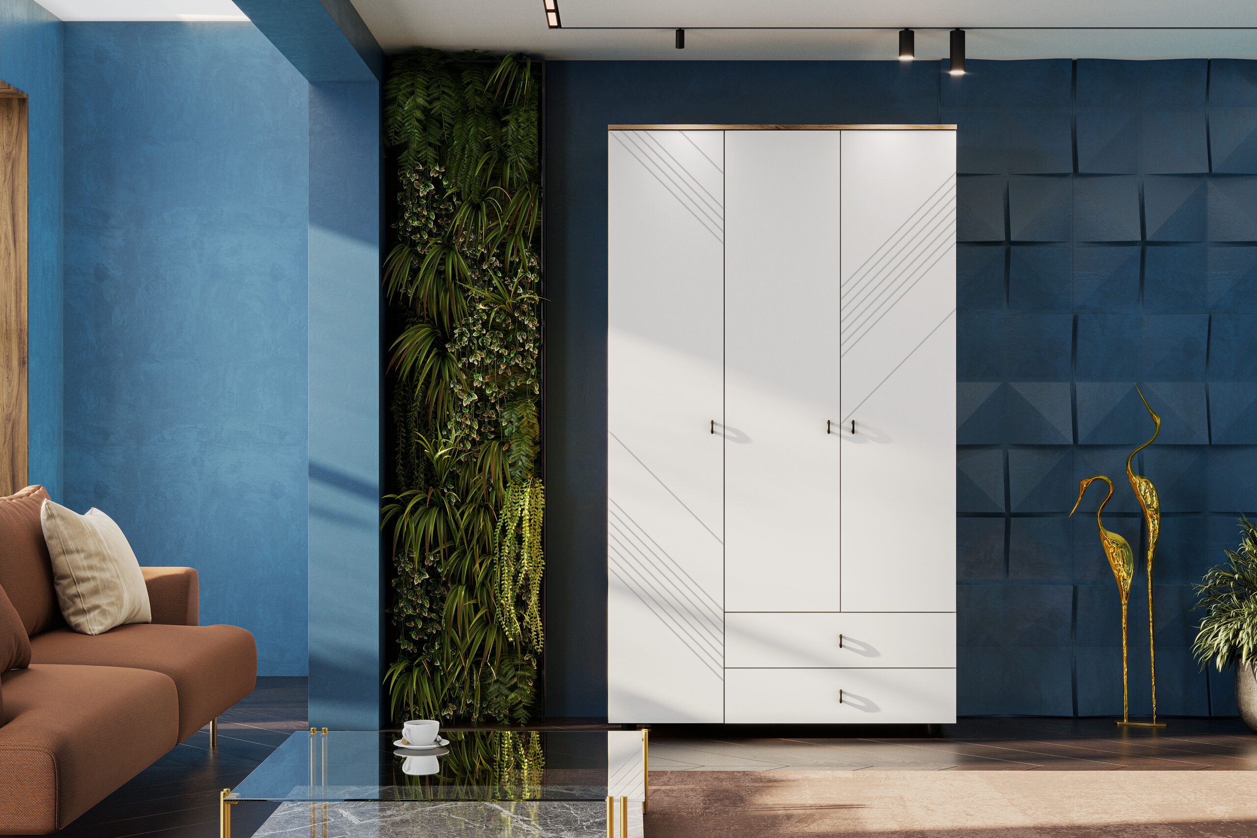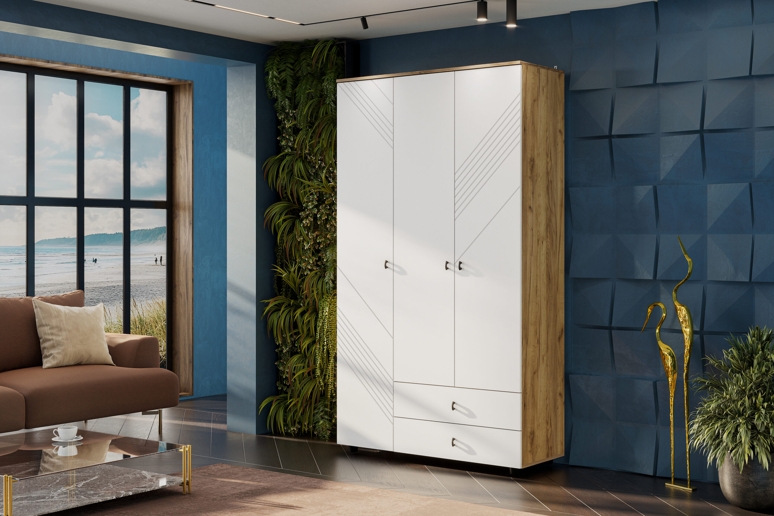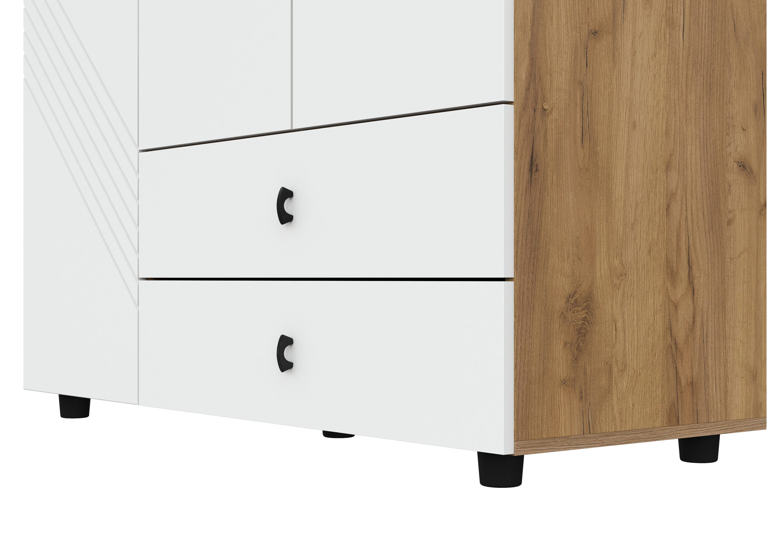 Шкаф трехстворчатый с ящиками Байкал, Дуб Золотой, Белый матовый