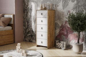 Комод 5 ящиков Байкал, Дуб золотой, Белый матовый