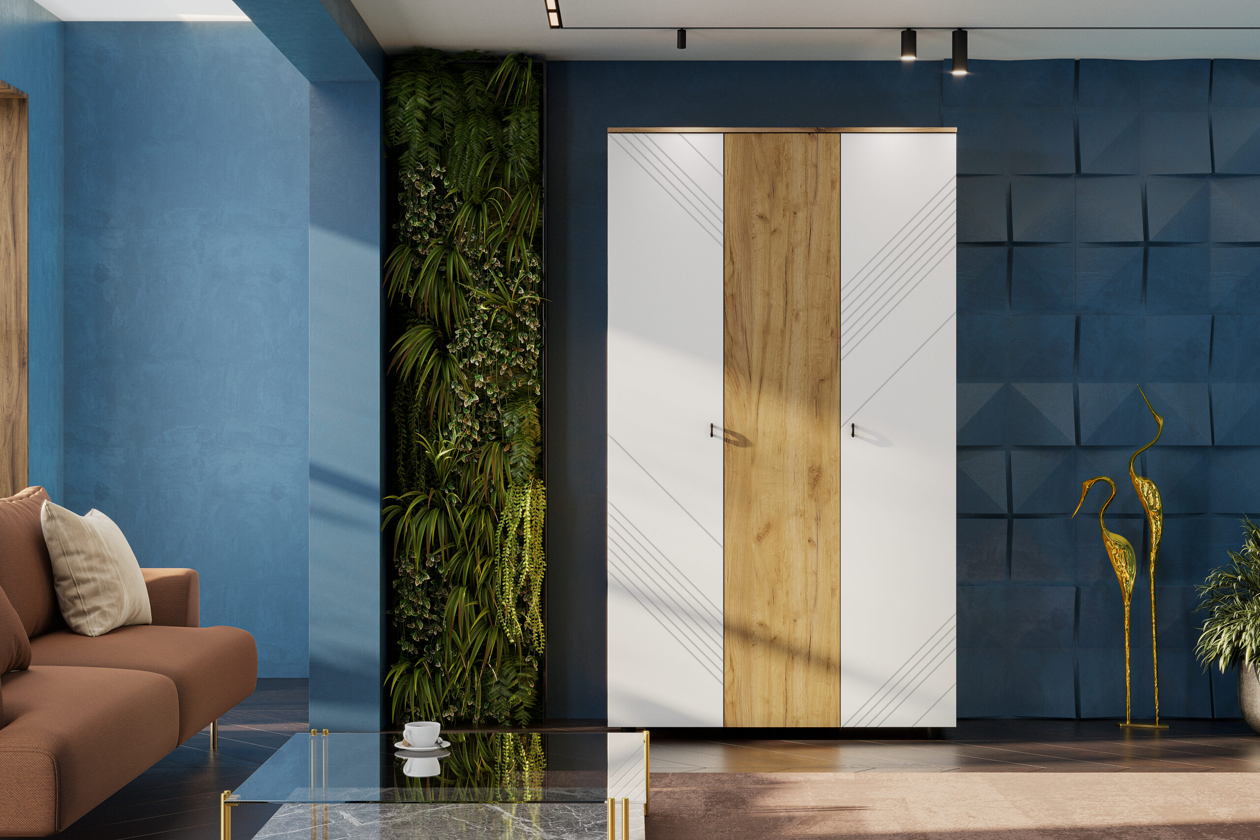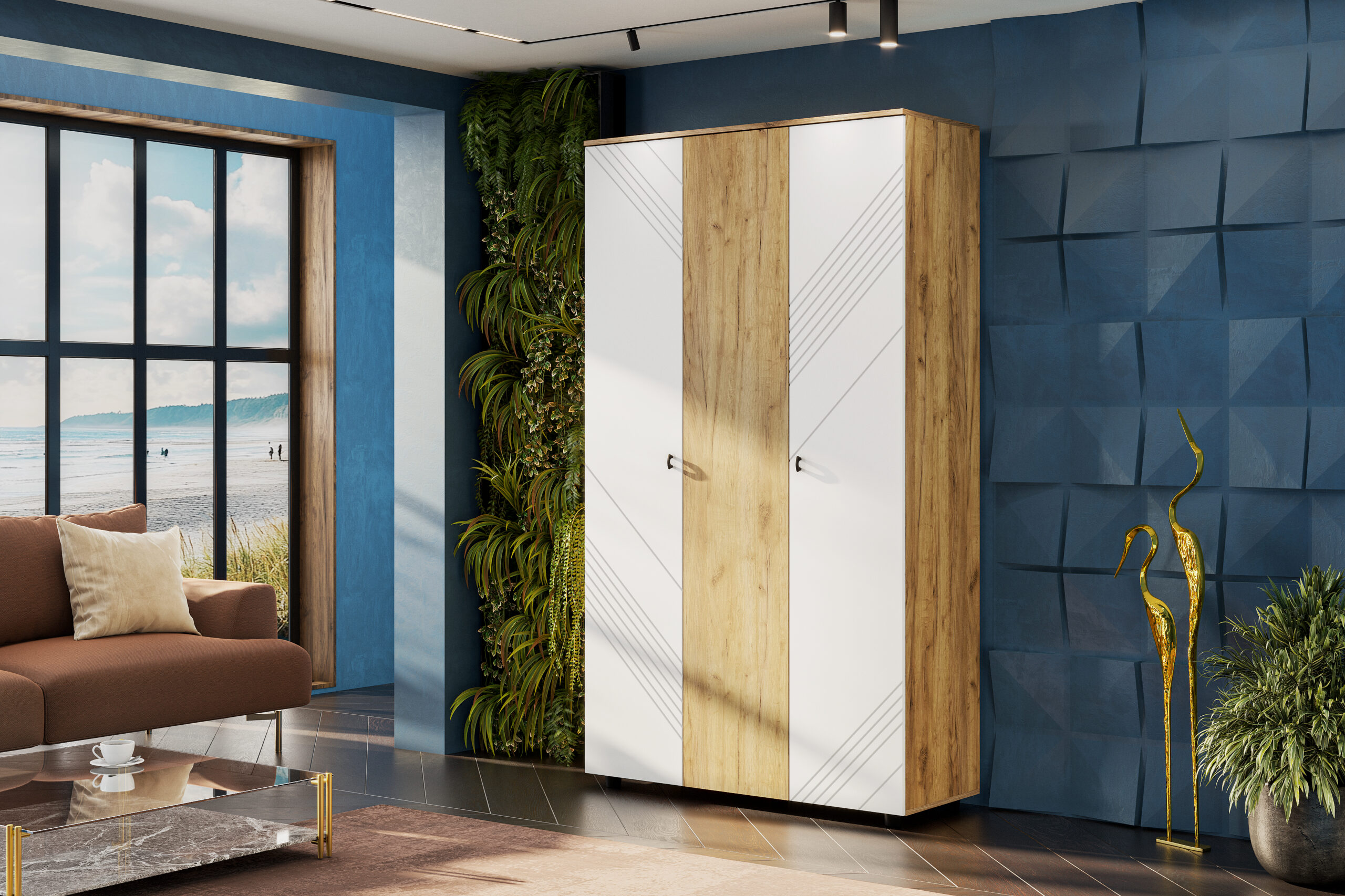 Шкаф трехстворчатый Байкал, Дуб Золотой, Белый матовый