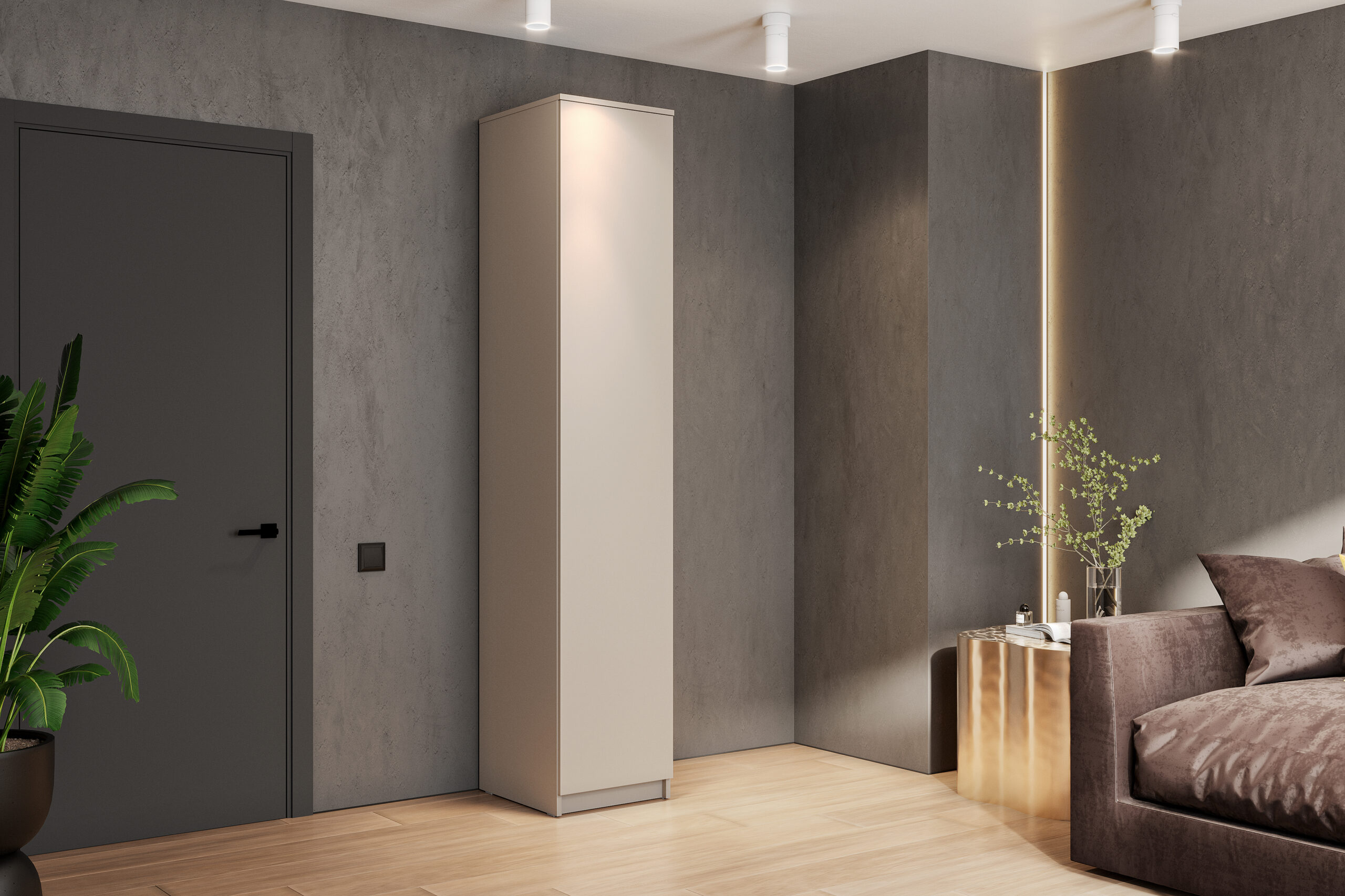 Однодверный шкаф идеально впишется в любой интерьер. Фасад выполнен из ЛДСП, что придает ему дополнительную прочность и долговечность. Внутри шкафа имеется несколько полок для хранения одежды и аксессуаров.