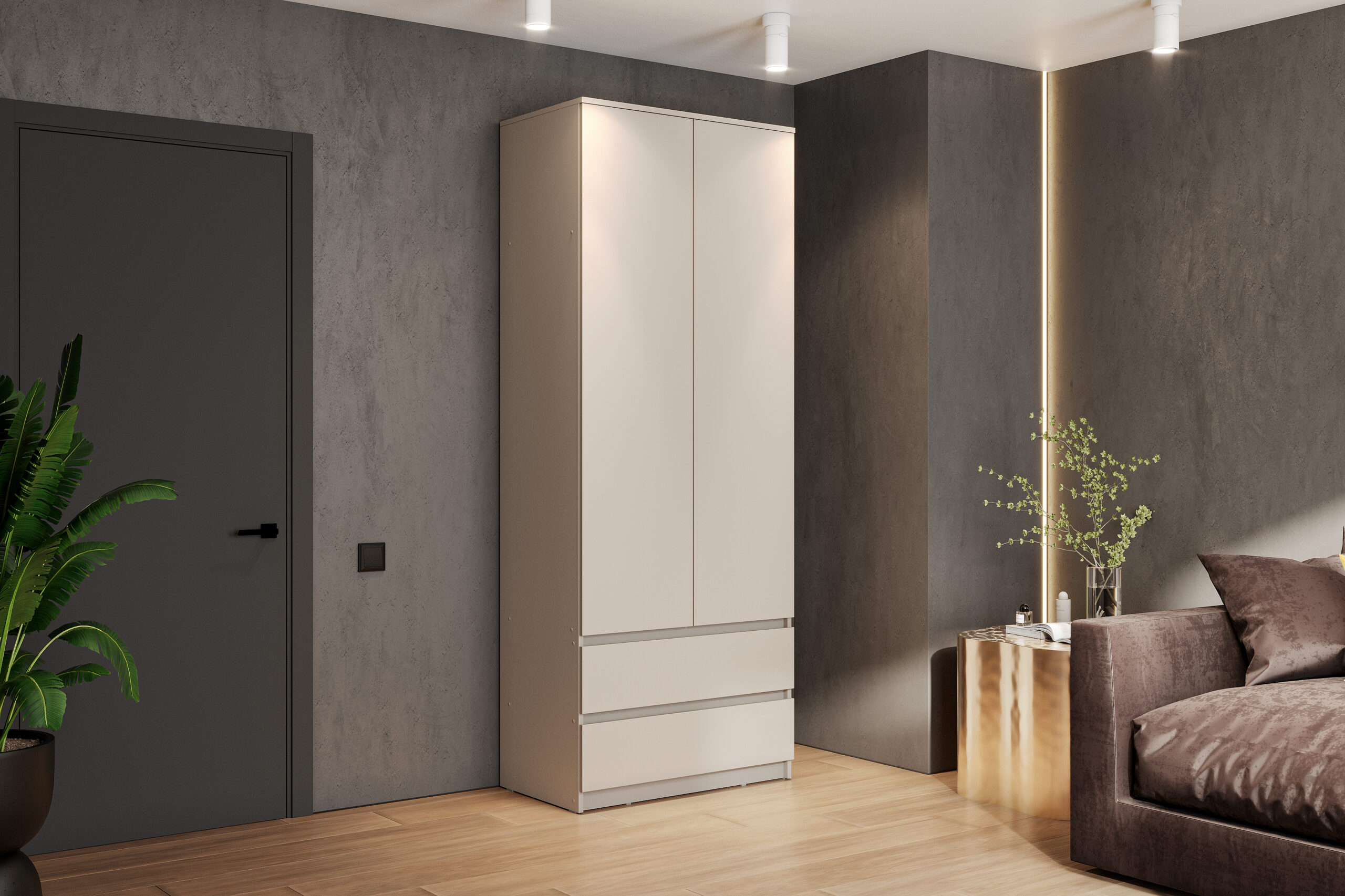 Шкаф Денвер с распашными дверьми и двумя ящиками — это идеальный выбор для тех, кто ищет стильную и функциональную мебель для своего дома. За распашными дверцами скрыты полки и штанга для одежды. Шкаф имеет два выдвижных вместительных ящика для хранения необходимых вещей. Цвет дуб золотой/белый выглядит стильно и практично, а благодаря своей универсальности, он подойдет для любого современного интерьера.