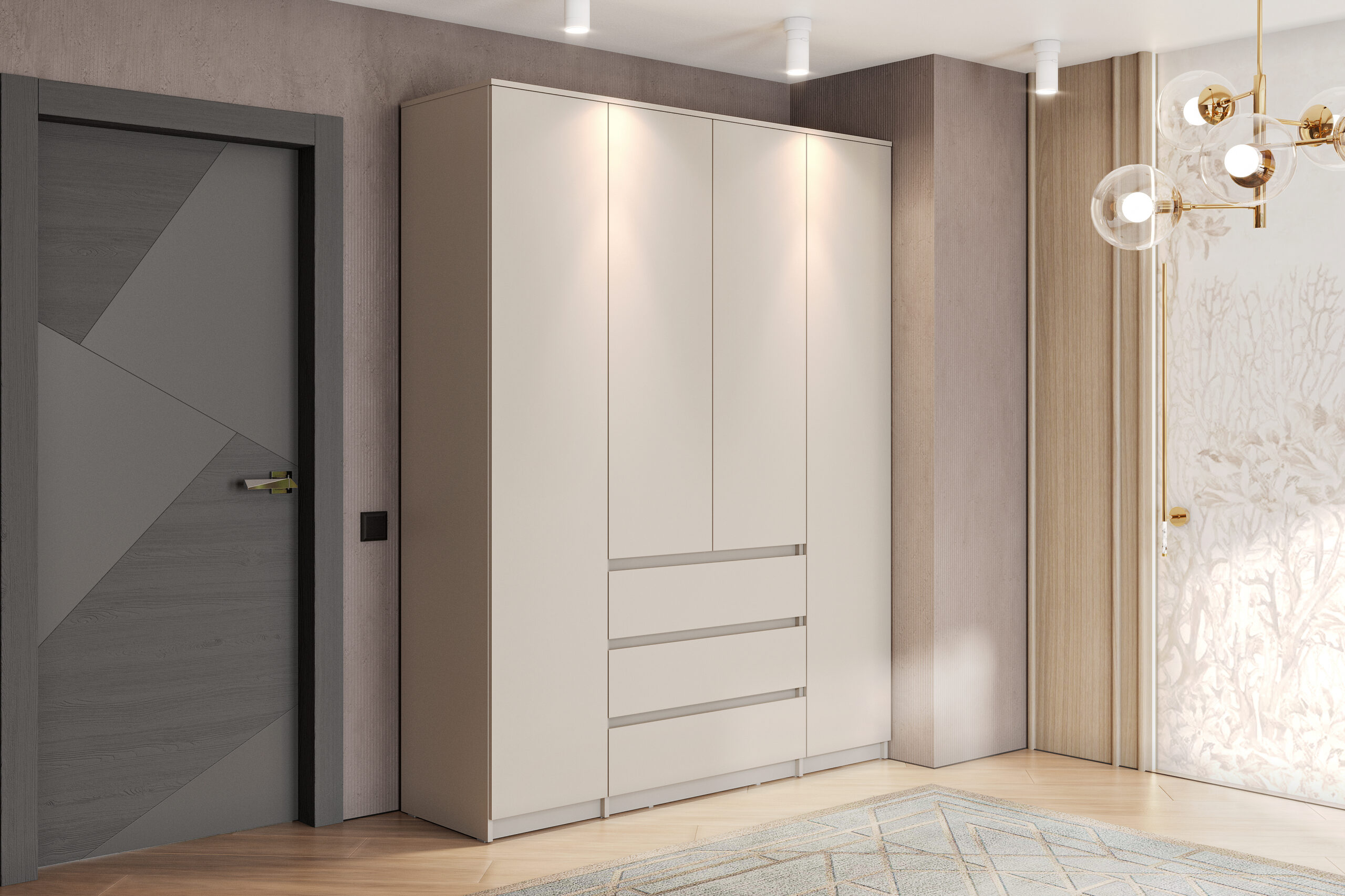 Вместительный распашной шкаф Денвер – это идеальное место хранения. Главное преимущество этого шкафа для одежды — его размер и наличие трех выдвижных ящиков. В нем вы сможете найти место для каждой вещи — от платьев до курток, от белья до обуви. Благодаря широким отделениям, вы сможете легко разделить вашу одежду по категориям и поддерживать порядок внутри. Распашные двери обеспечивают удобный доступ к вашей одежде. Три выдвижных ящика помогут легко и быстро найти нужное. Шкаф Денвер оснащен пятью вместительными полками и двумя штангами для одежды, обеспечивая сохранность и презентабельность Ваших вещей. Двери открываются с помощью нажатия.