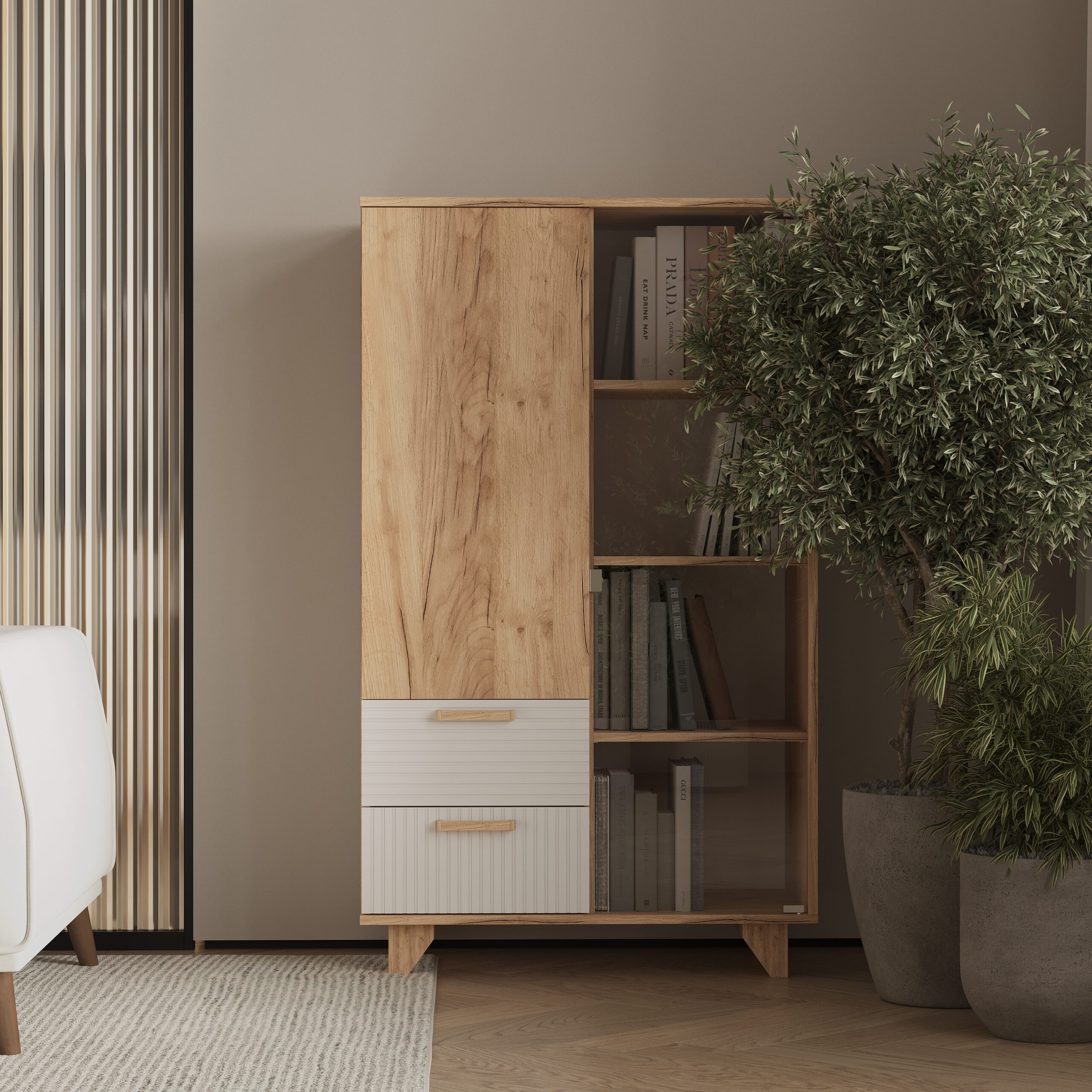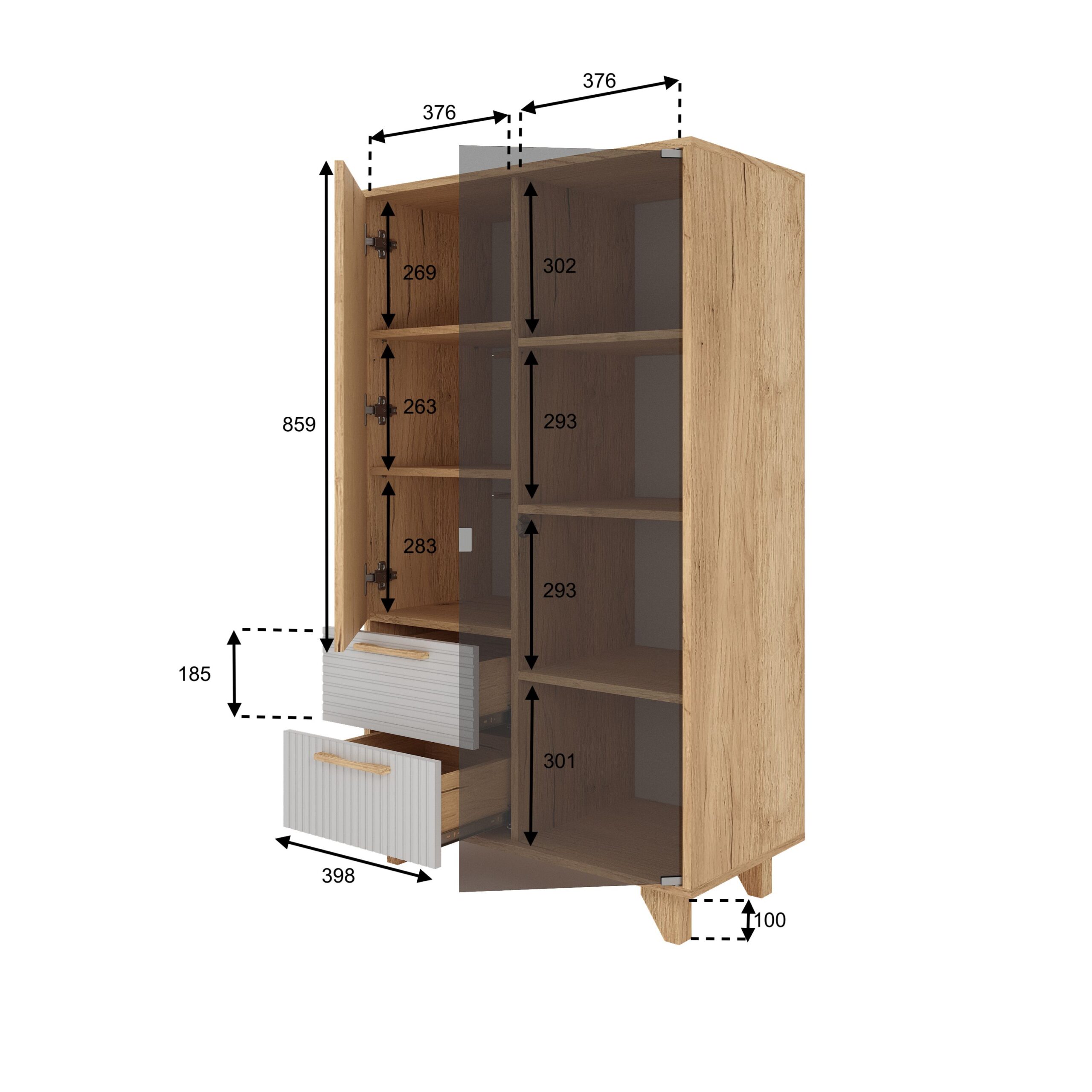 Ньёрд Шкаф-Витрина Дуб вотан/Белый - Фирменный интернет-магазин мебели «Арника»