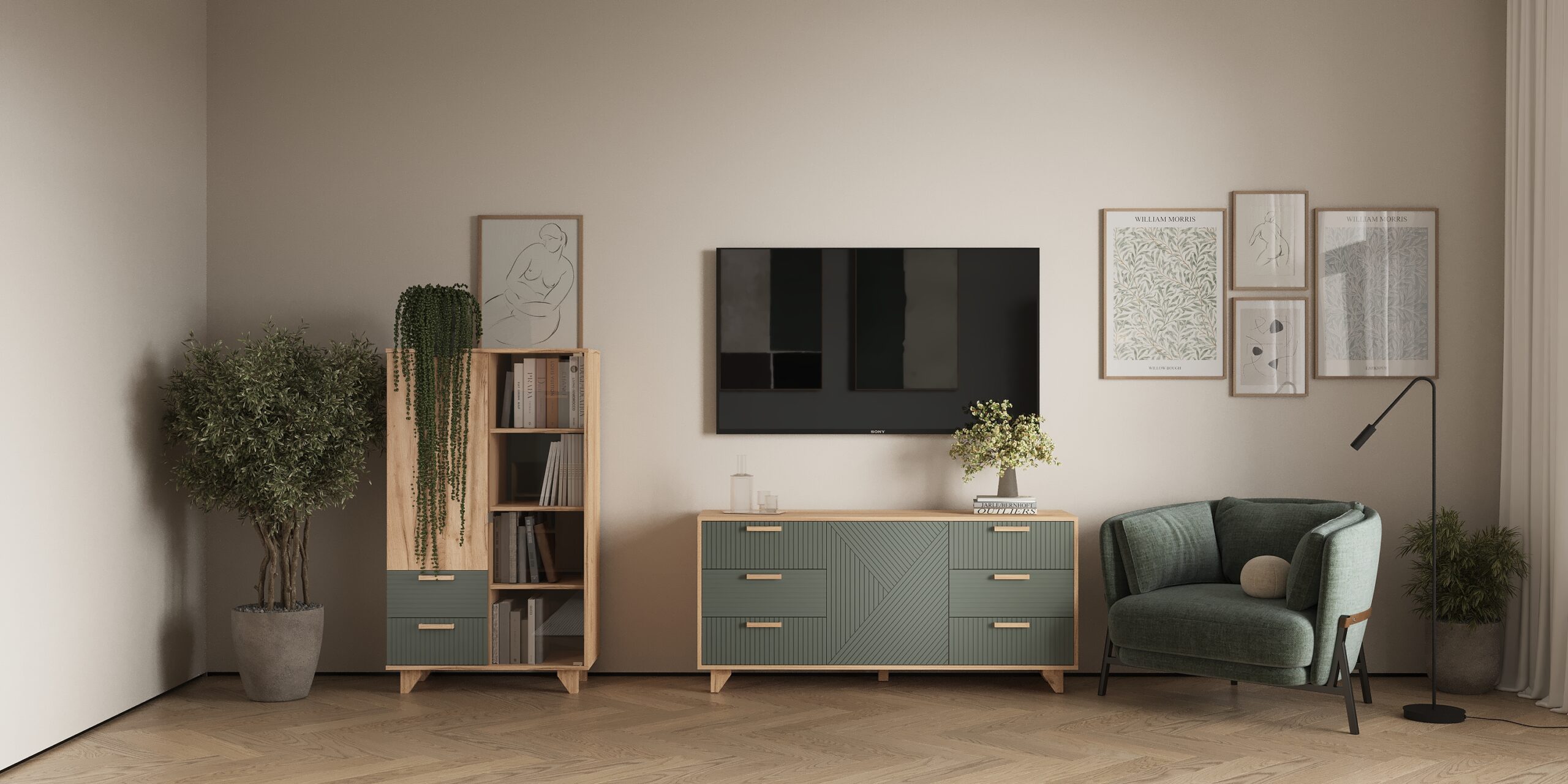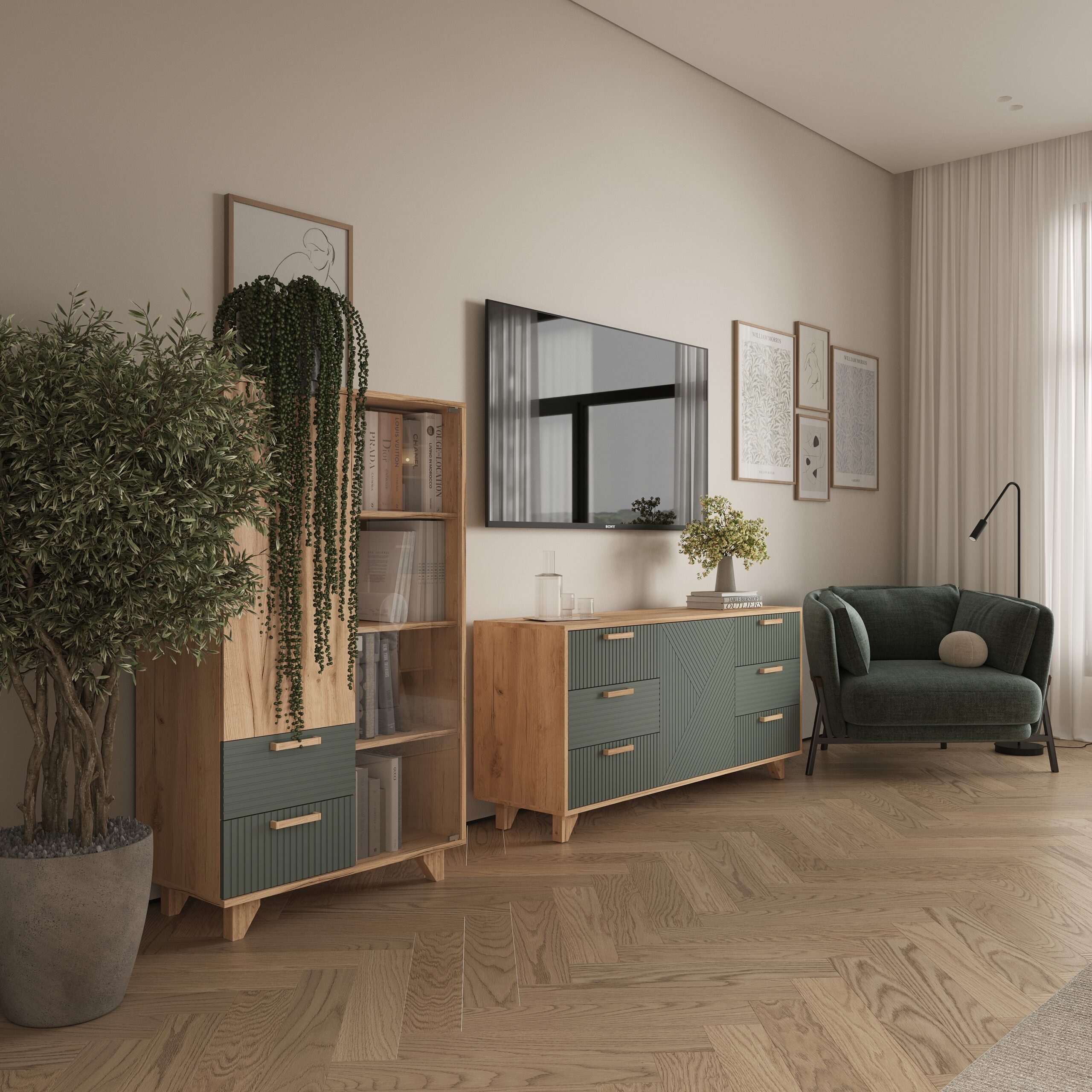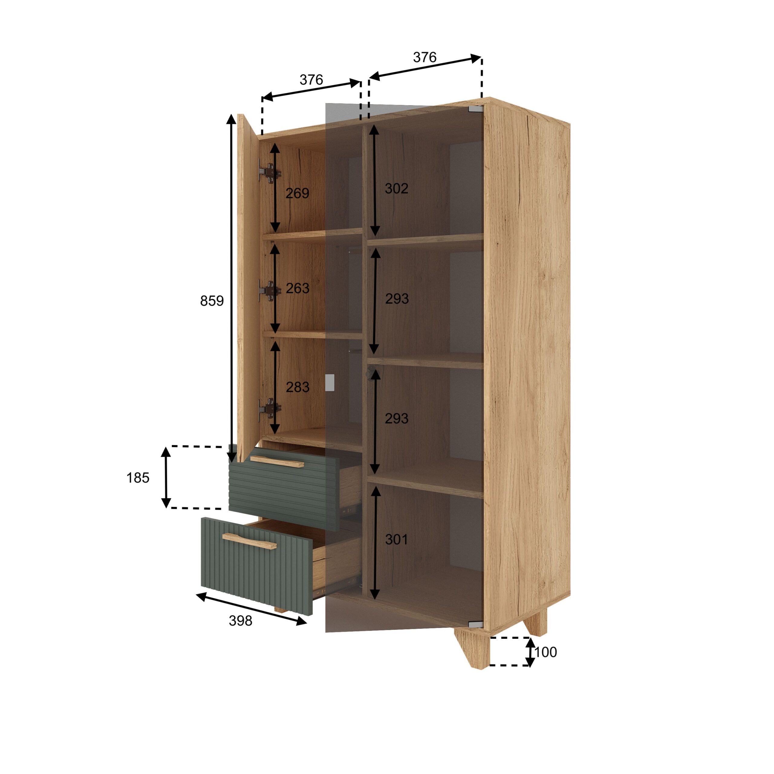 Ньёрд Шкаф-Витрина Дуб вотан/Можжевельник - Фирменный интернет-магазин мебели «Арника»