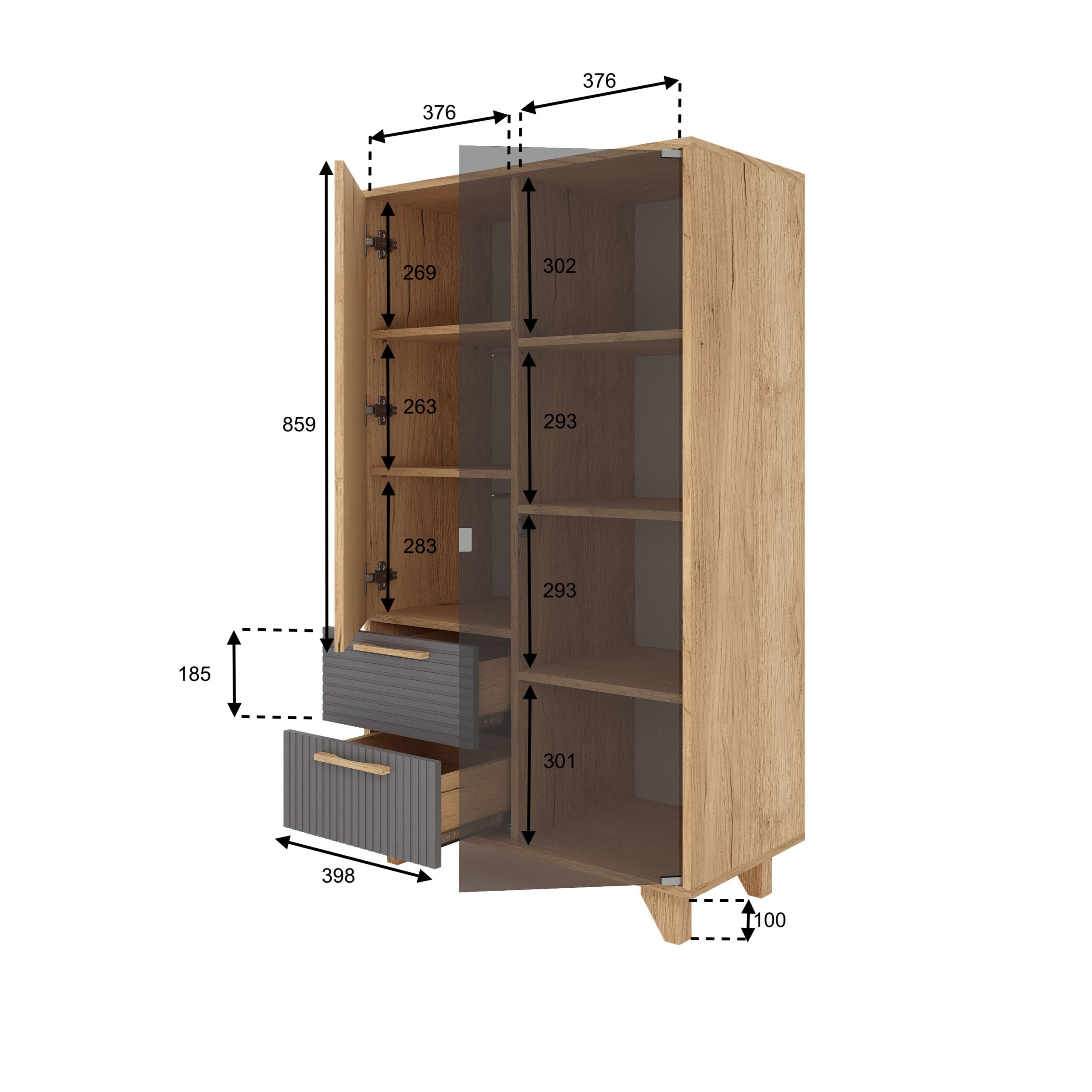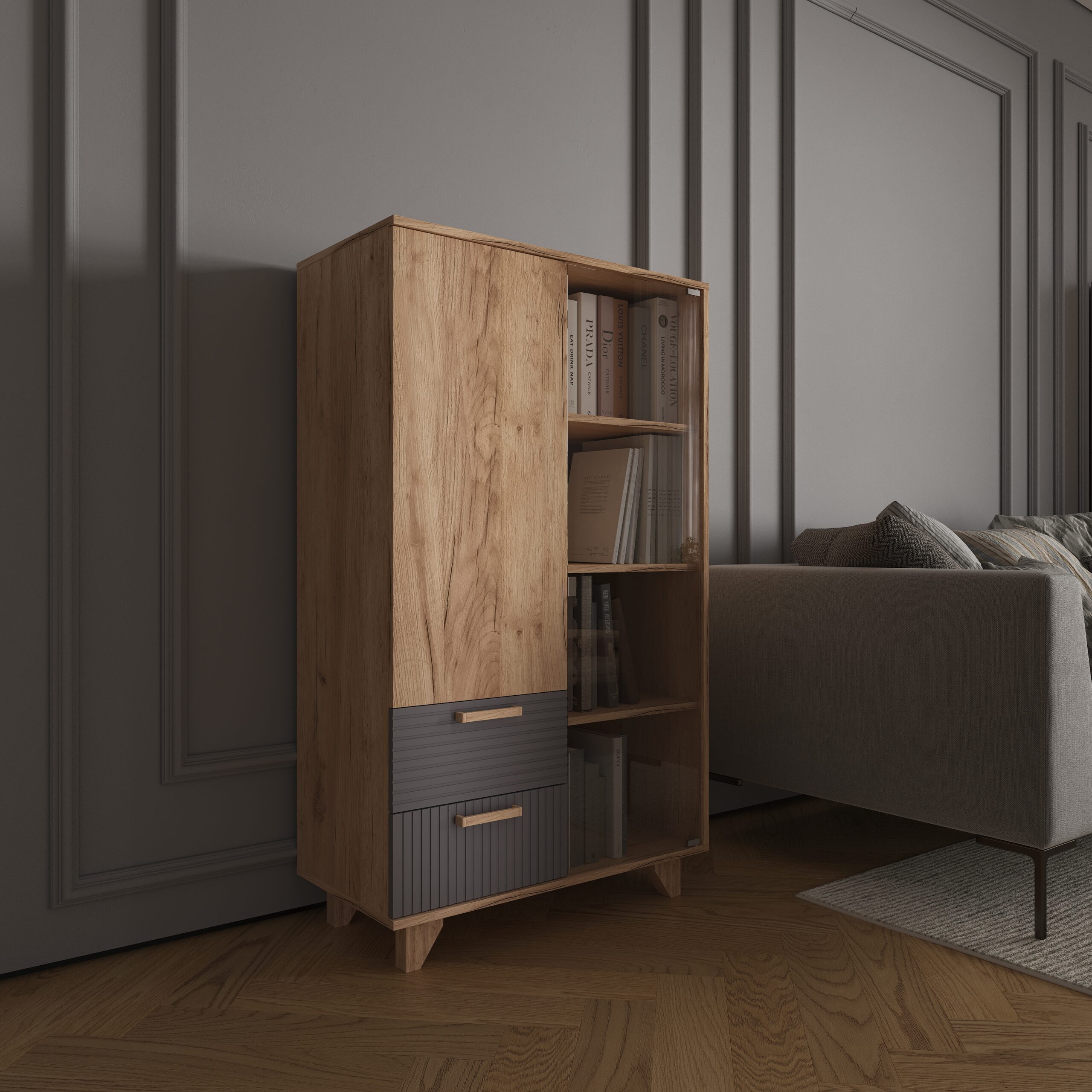 Ньёрд Шкаф-Витрина Дуб вотан/Черника - Фирменный интернет-магазин мебели «Арника»