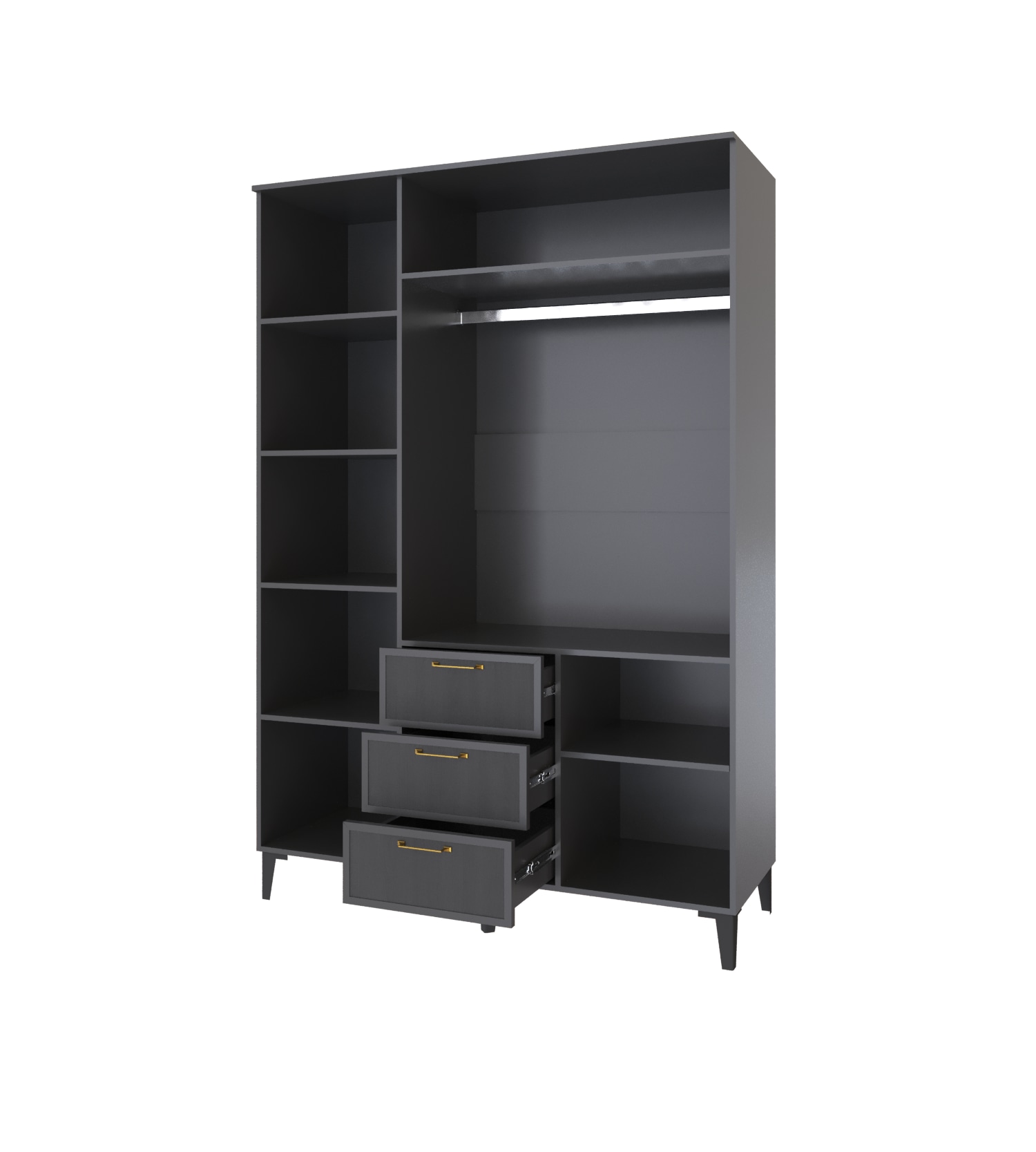 Шкаф трехстворчатый Толедо ТШ-22 — это стильное и функциональное решение для вашего интерьера. Его элегантный дизайн и современная отделка создают атмосферу свежести и простора. Внутреннее наполнение шкафа продумано до мелочей, создавая идеальные условия для хранения ваших вещей. На полках вы сможете удобно разместить различные предметы: от аккуратно сложенных свитеров и постельного белья до книг и аксессуаров. А стационарная штанга позволит вам с лёгкостью повесить любимую одежду, включая платья, рубашки и жакеты, обеспечивая им идеальный вид и доступность. Также шкаф оборудован тремя ящиками на шариковых направляющих.