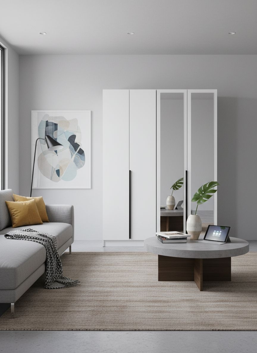 Шкаф Мадрид (1,2) с зеркалом белый/ателье светлое