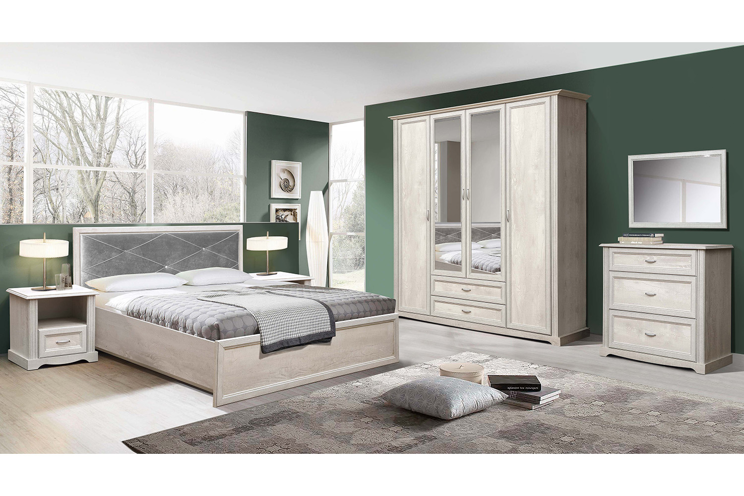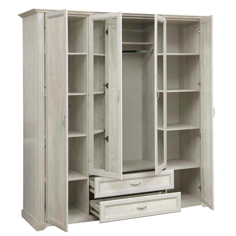 Шкаф для одежды 32.01 "Сохо" (4-х дв.) с зеркалом(бетон пайн белый / профиль: бетон пайн белый патин - Фирменный интернет-магазин мебели «Арника»