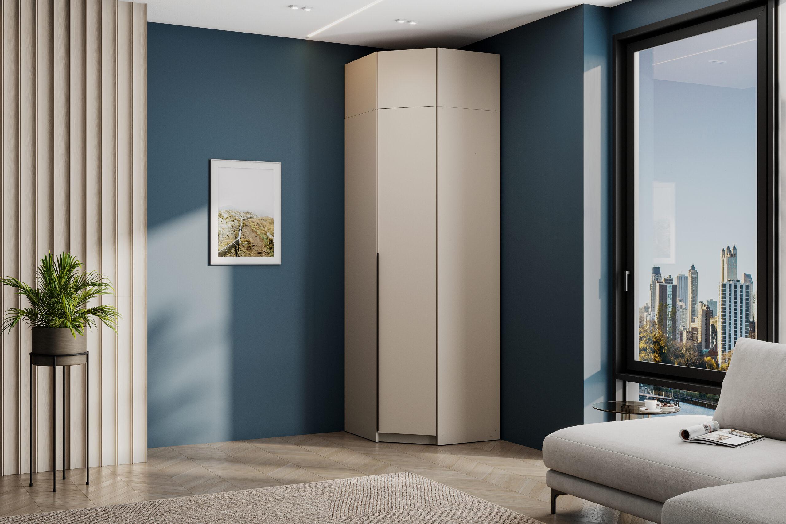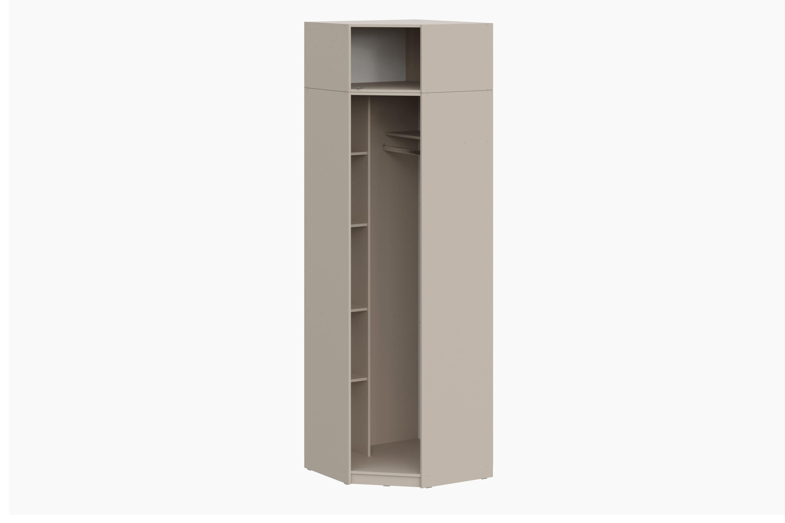 Шкаф угловой ШК 5 — это настоящая эстетика минимализма. Строгие линии, спокойная цветовая гамма идеально впишутся в современный дизайн комнаты. Функциональное внутреннее наполнение из стационарной штанги и полок позволит разместить белье, одежду и аксессуары в одном месте, грамотно использовав пространство комнаты. При необходимости к шкафу стыкуются другие модули из коллекции ШК 5.