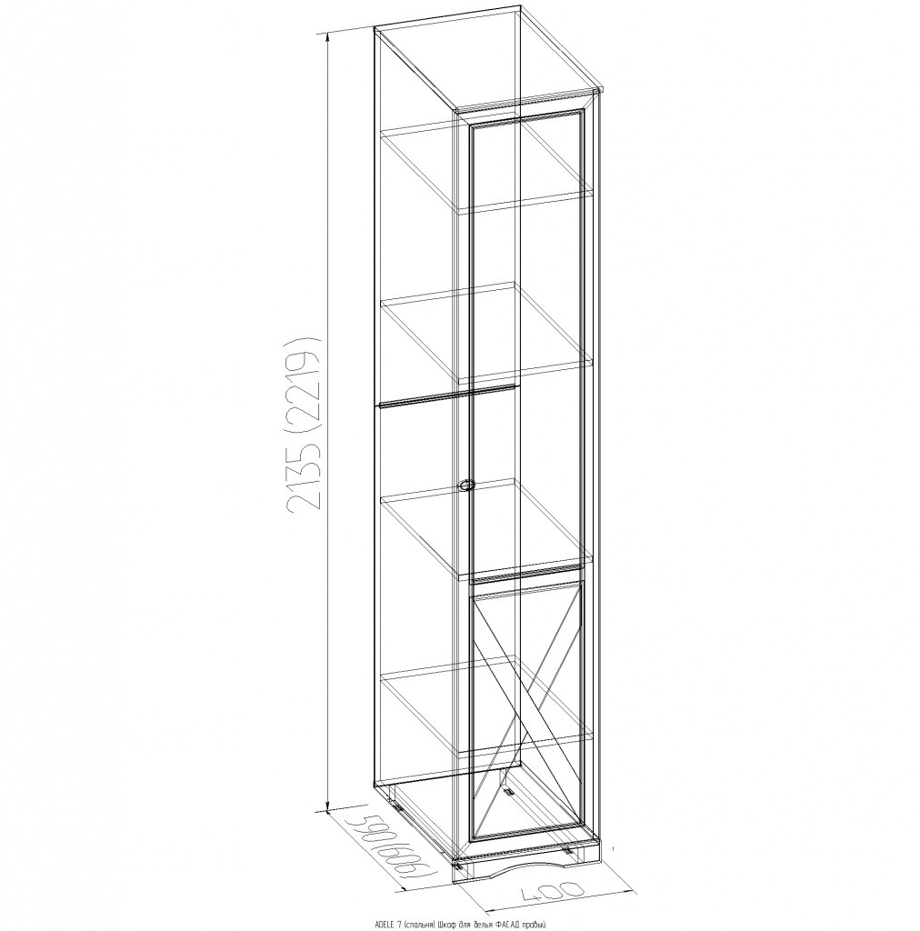 Узкий и высокий шкаф для белья с полками, регулируемыми по высоте. Закрепите в корпус полкодержатели в подготовленные отверстия и установите полки. В комплекте 4 полки. Фигурный цоколь и декоративная раскладка на фасаде