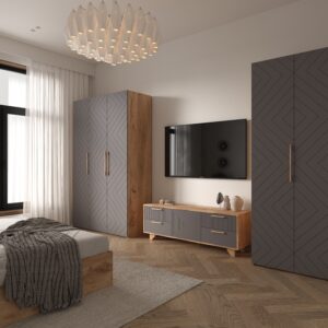 Шкаф-пенал 13.227 Остин Серый Графит, Дуб Золотой