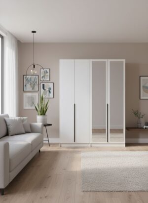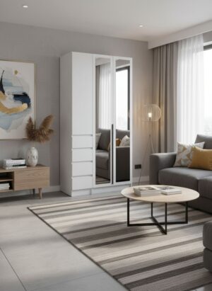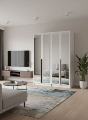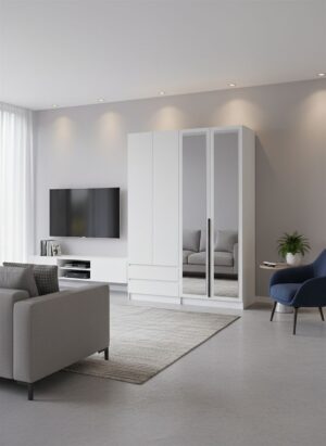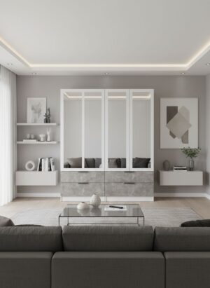 Антресоль Мадрид (1,3) с зеркалом 300 белый/ателье светлое