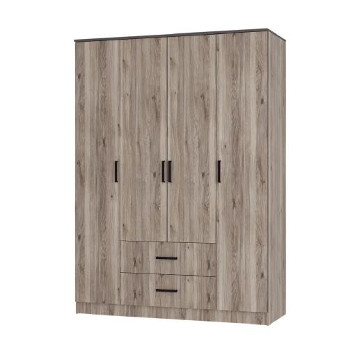 разноплановое наполнение шкафа: штанга, полки, ящики