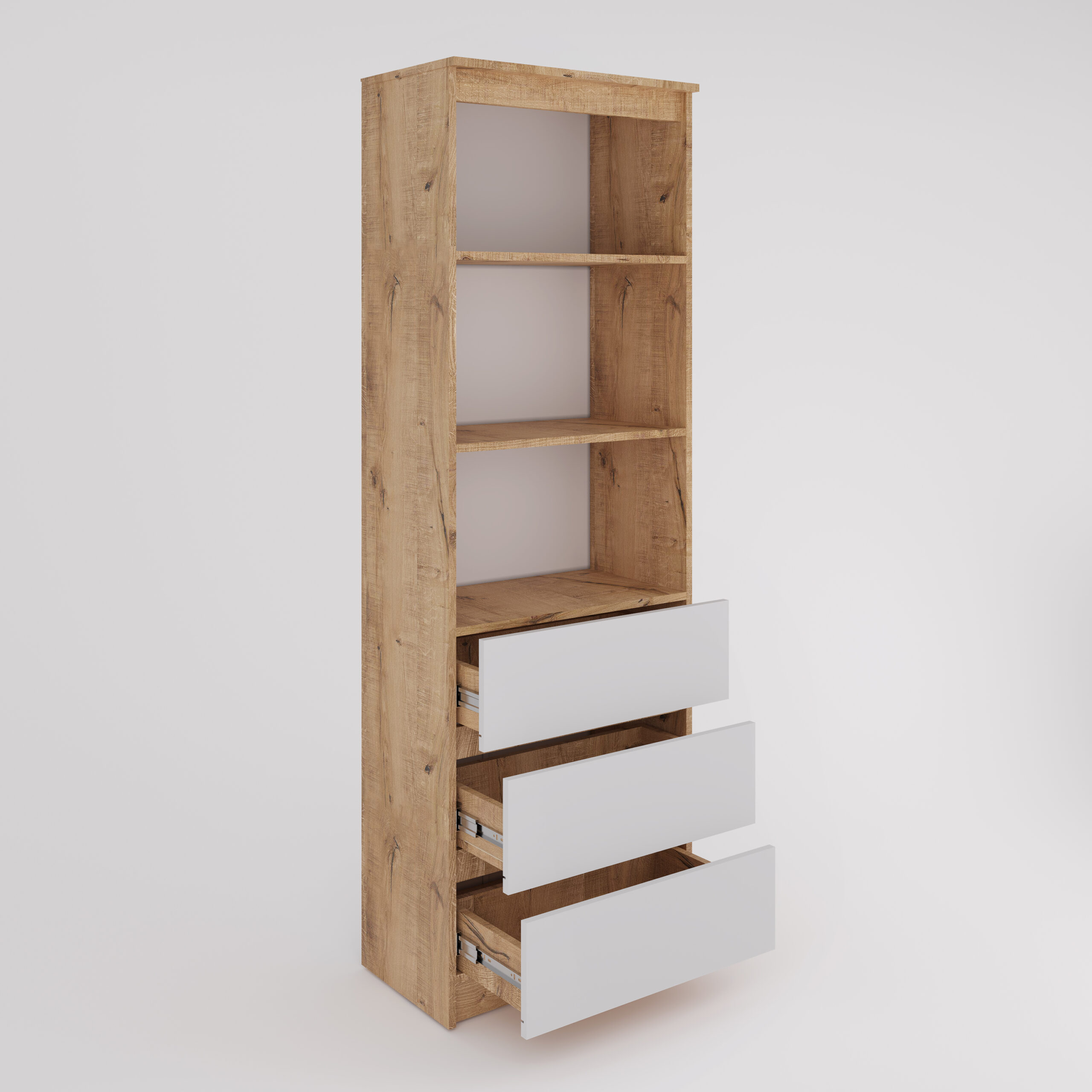 МС Охта Лайт Стеллаж 600.3 Дуб ВотанБелый гладкий - Фирменный интернет-магазин мебели «Арника»