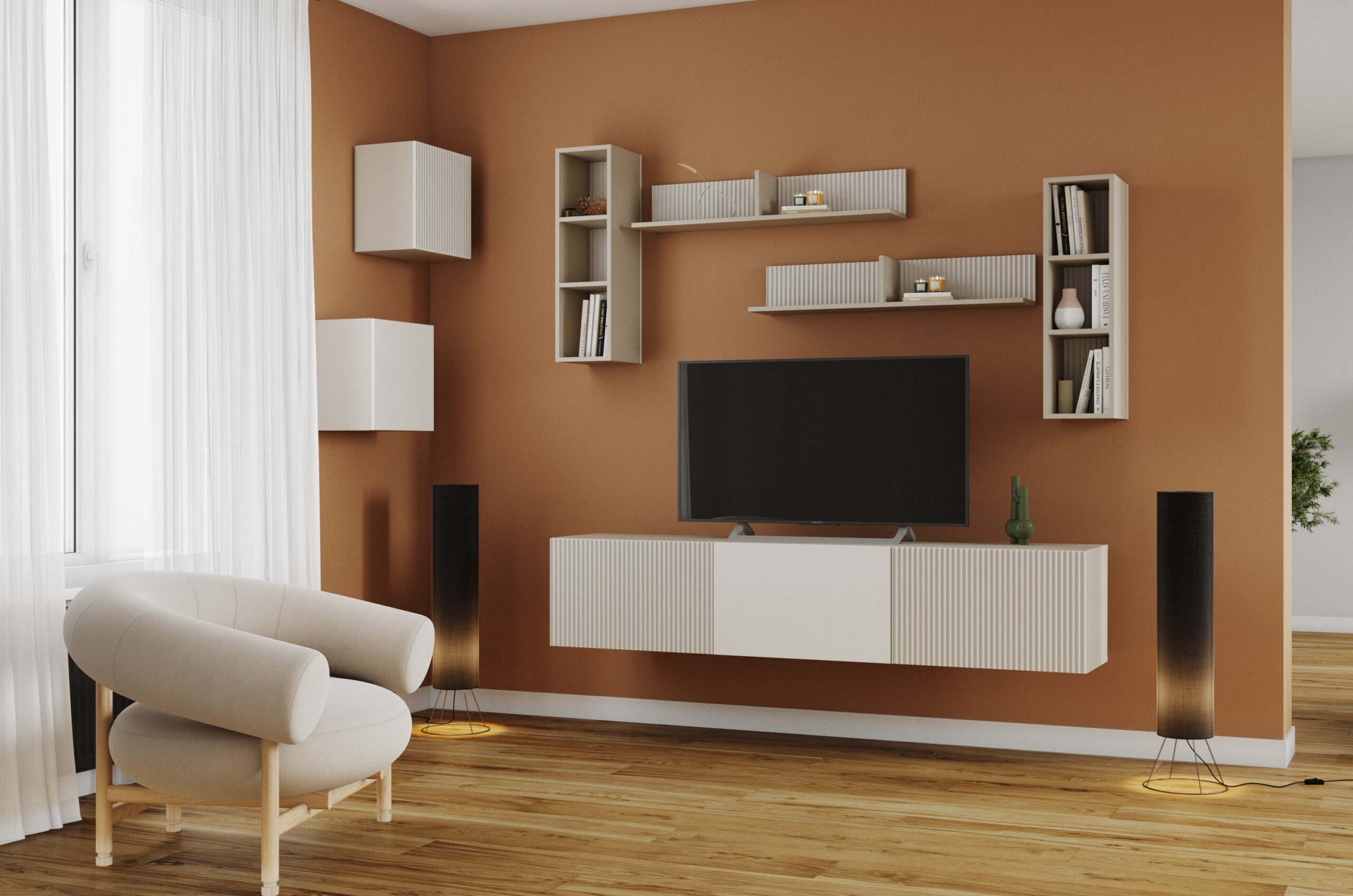 Тумба «Сириния» может использоваться как самостоятельный предмет мебели или в составе модульной композиции, создавая цельный и функциональный интерьер. Это удачное сочетание эстетики, удобства и современного характера мебели для гостиной.