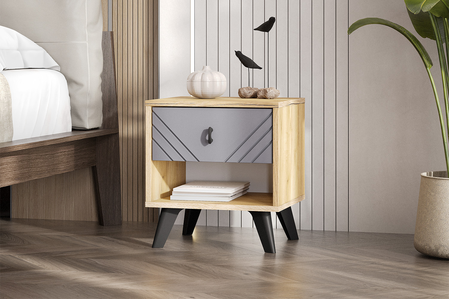 Тумба прикроватная Байкал, Дуб золотой, Графит