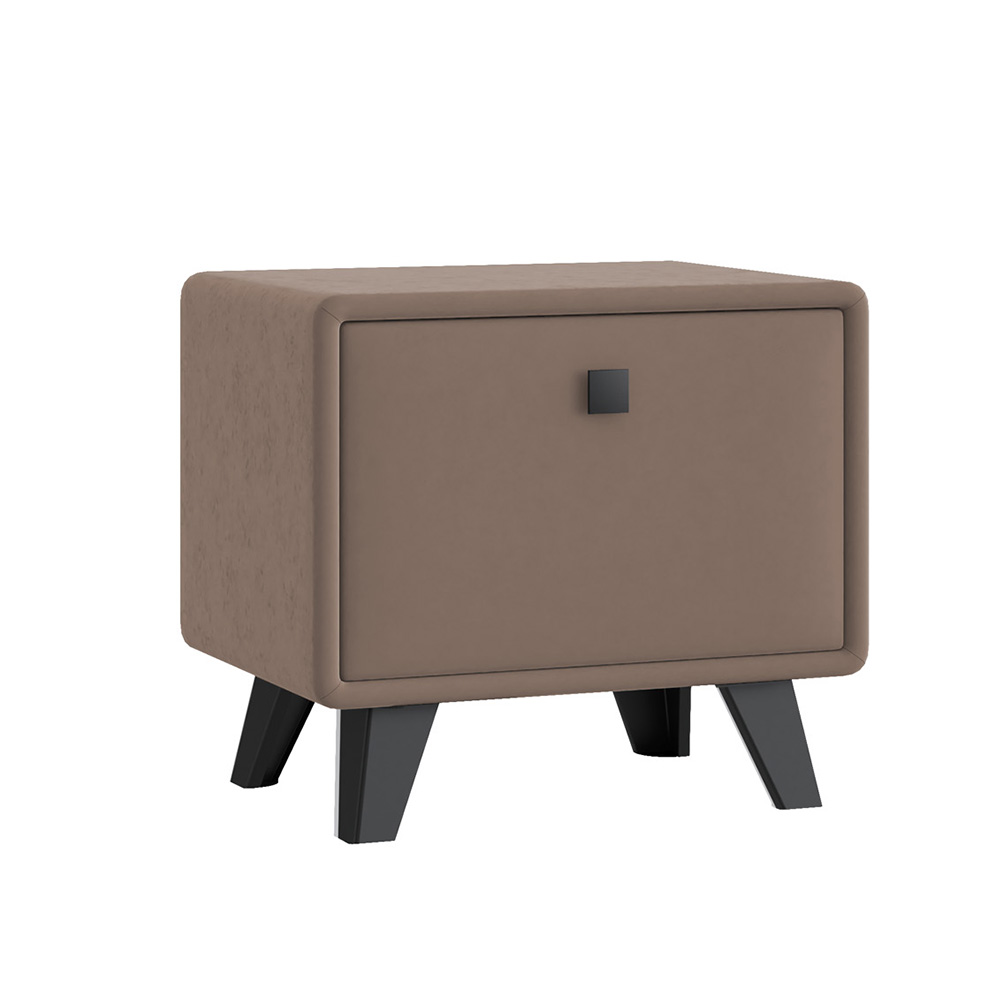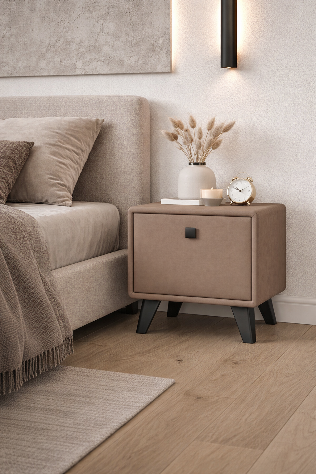 Тумба Николь (1 ящик) (Микровелюр песчано-бежевый, Ручка-кнопка (квадрат) черная) - Фирменный интернет-магазин мебели «Арника»