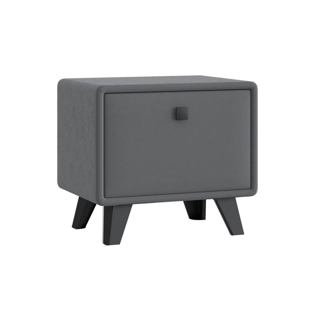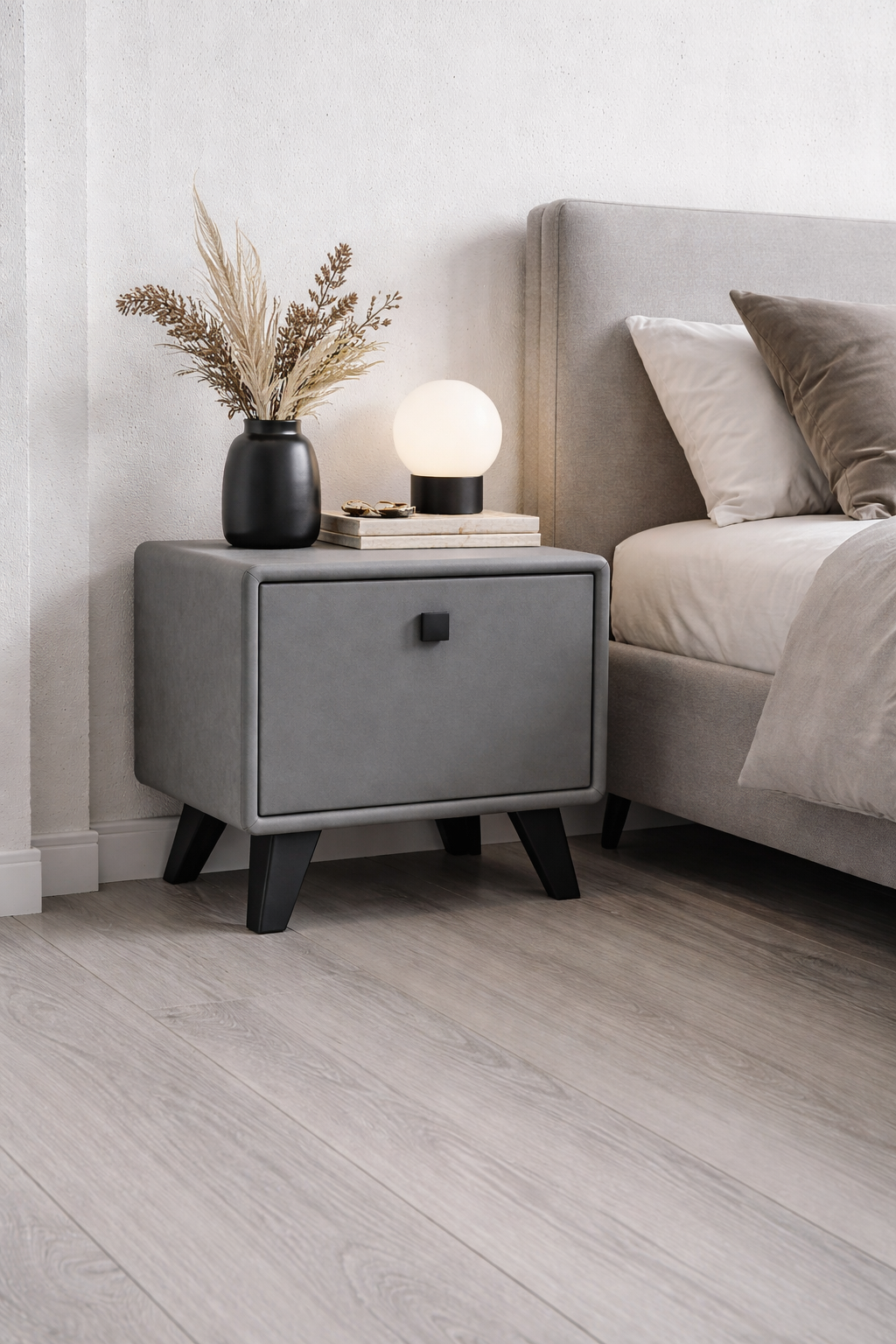 Тумба Николь (1 ящик) (Микровелюр приглушено-серый, Ручка-кнопка (квадрат) черная)