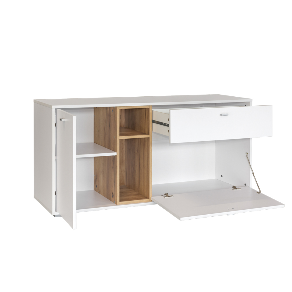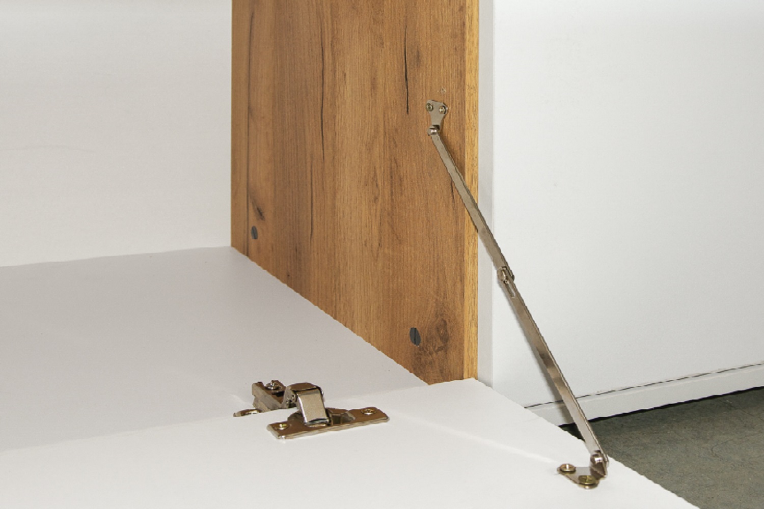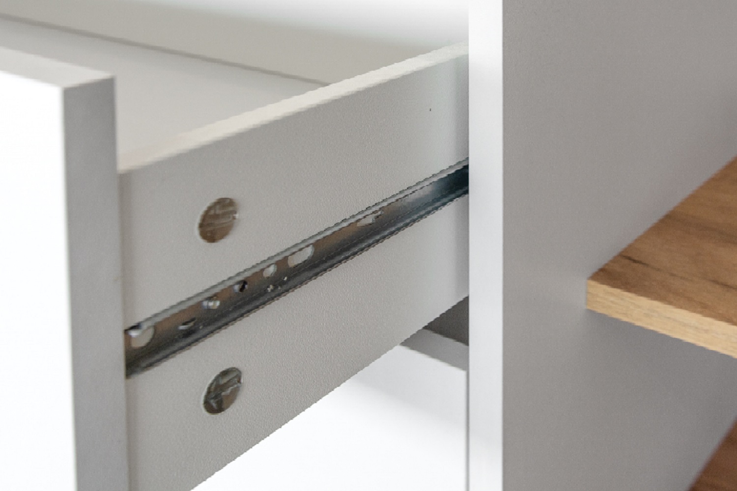 Тумба оснащена одним ящиком с шариковыми направляющими, что обеспечивает удобство использования. В комплекте идёт вся необходимая фурнитура, включая ручки из ABS-пластика.