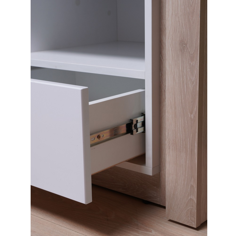 - Материалы: КаркасЛДСП 16ммДуб Сакраменто, Задняя стенка -ДВПО Белое, Фасад МДФ 16ммБелый снег глянец.