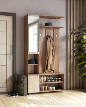Первое впечатление о квартире формируется уже с порога, поэтому прихожая должна не только быть функциональной, но и радовать стильным оформлением, создавая атмосферу уюта для вас и ваших гостей. Отличным решением для небольших пространств станет мебельный комплекс «Эконом». В его конструкции предусмотрены крючки для верхней одежды, верхняя полка для головных уборов, закрытая секция со встроенным зеркалом, удобные полки для обуви и отделение с распашной дверцей.
