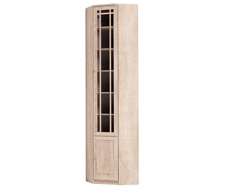 Угловой книжный шкаф — практичное решение для малогабаритных гостиных, библиотек или рабочих кабинетов, где каждый свободный сантиметр важно использовать рационально. Конструкция и габариты шкафа позволят Вам организовать полноценную зону для бережного хранения литературы и сопутствующих вещей. Модуль возможно установить в комнате, высота полотка которой не менее 240 см. Наполнение — комплект регулируемых по высоте полок. Фасад шкафа декорирован тонированным стеклом, свойства которого защитят Ваши книги от вредного воздействия лучей света и загрязнений. Шкаф для книг Sherlock 33 обязательнокрепится к стене за подвесы и межсекционной стяжкой с другими шкафами в комплекте.